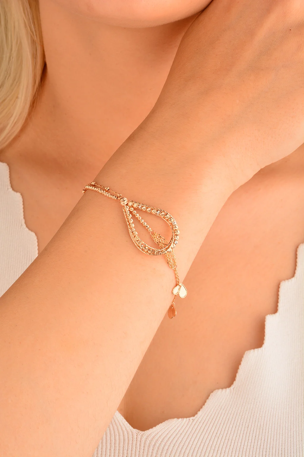 Cebeci 14 Ayar Dorika Su Damlası Rose Altın Bileklik