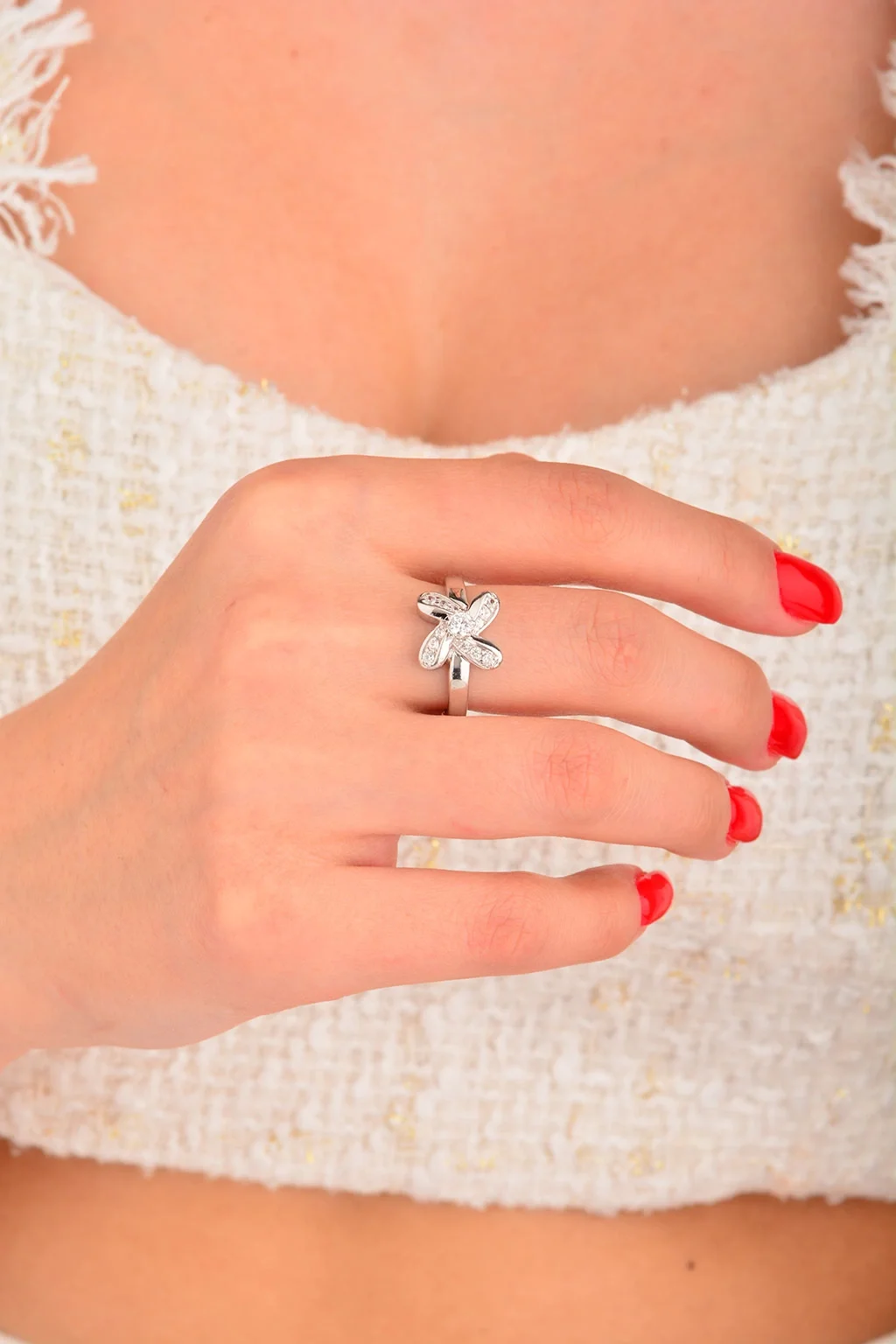 Cebeci 14 Ayar Dört Yapraklı Çiçek Altın Yüzük