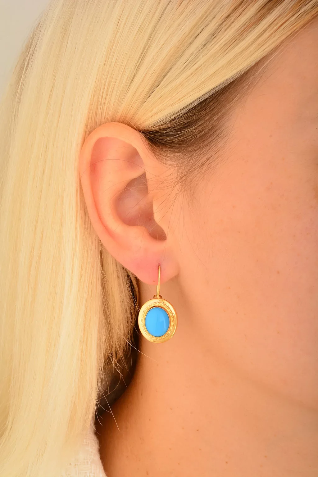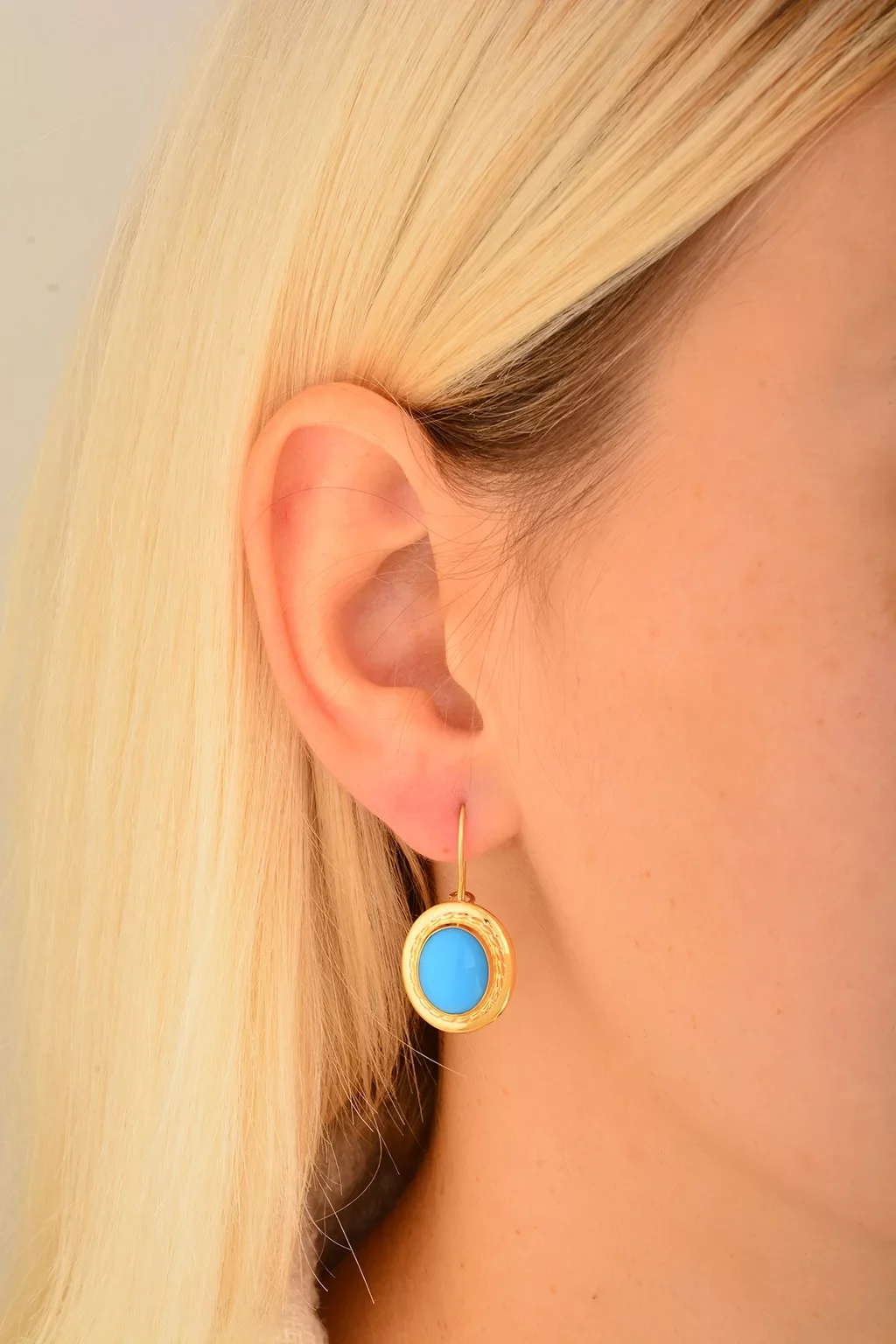 Cebeci 14 Ayar Firuze Taşlı Altın Küpe