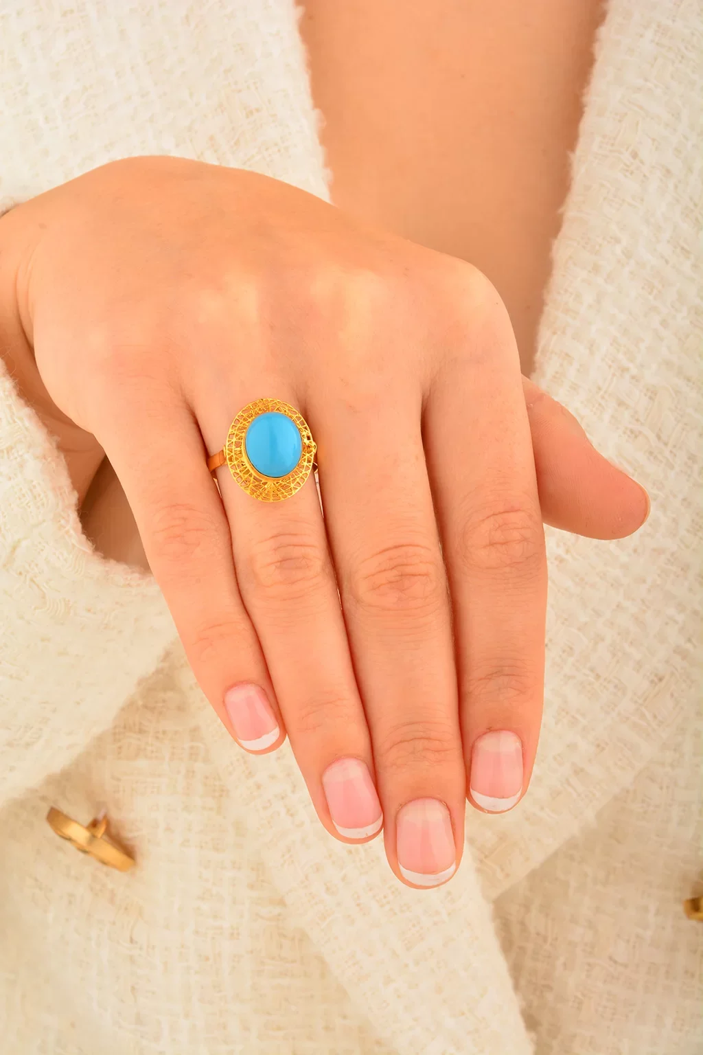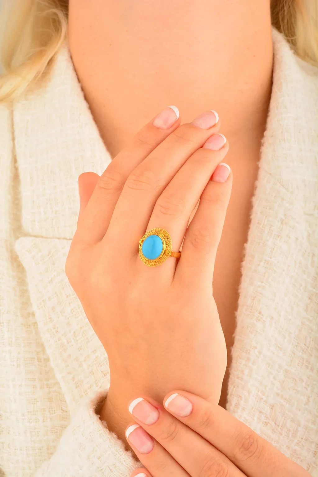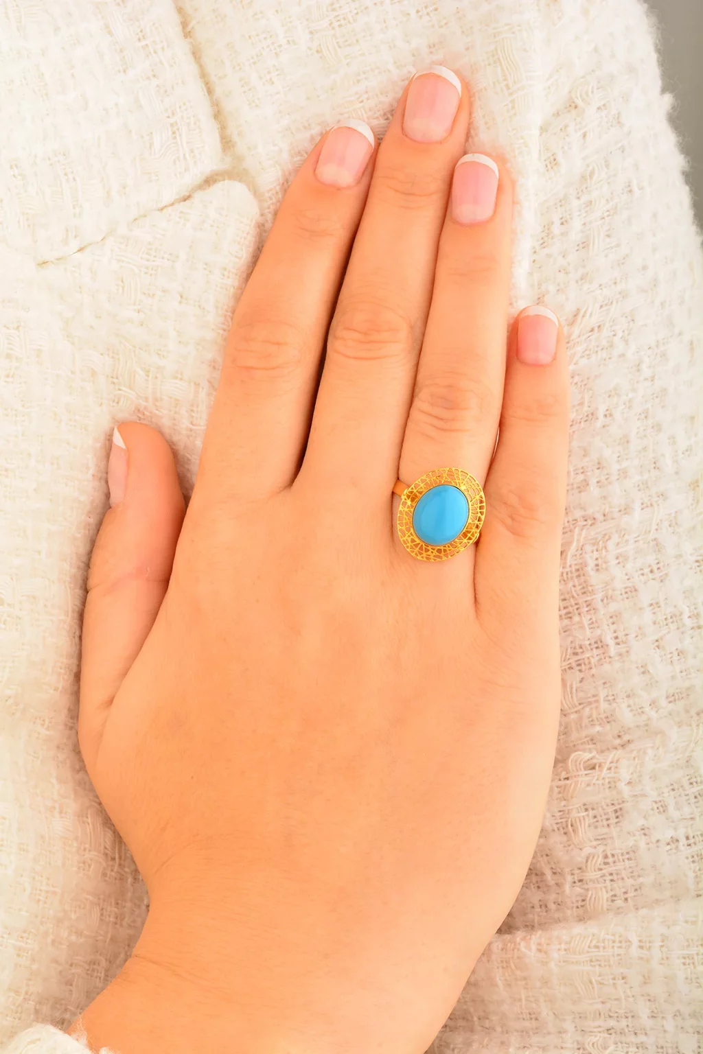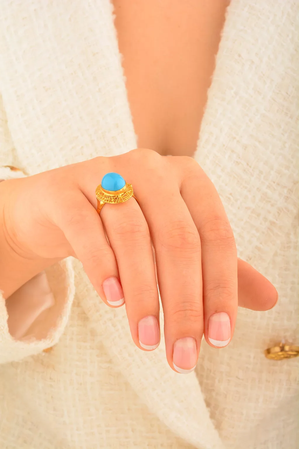 Cebeci 14 Ayar Firuze Taşlı Altın Yüzük