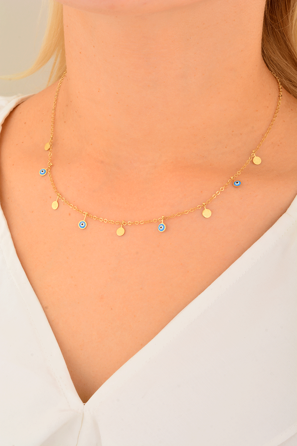 Cebeci 14 Ayar Göz Boncuklu Altın Kolye