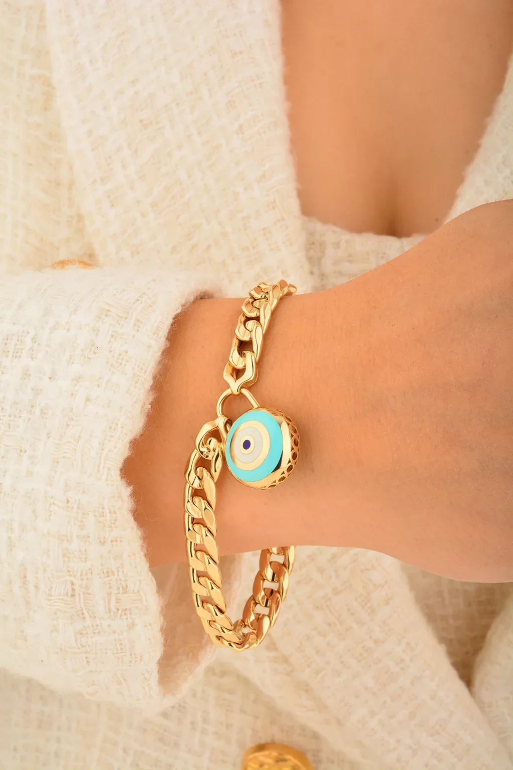 Cebeci 14 Ayar Göz Boncuklu Altın Bileklik