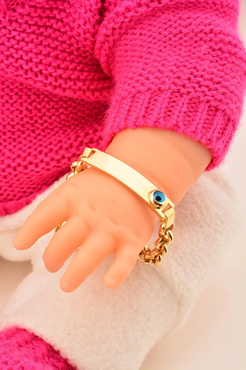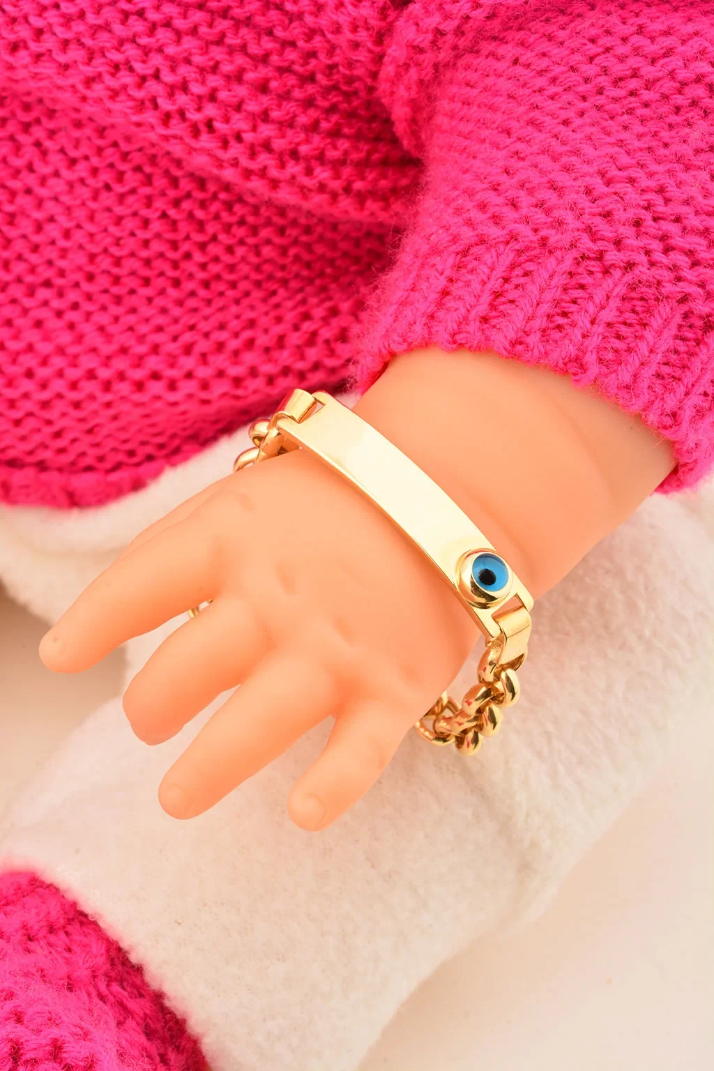 Cebeci 14 Ayar Göz Boncuklu Çocuk Altın Künye Bileklik
