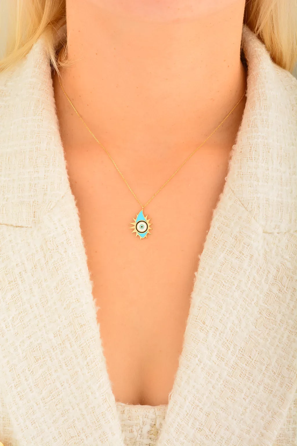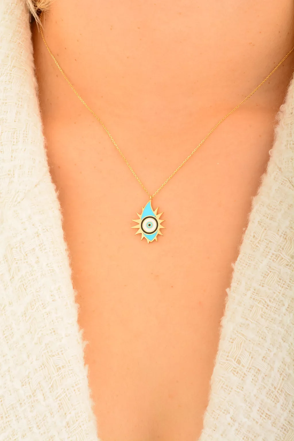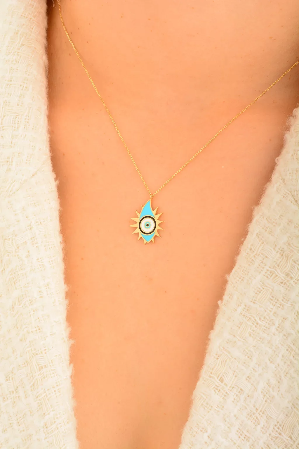 Cebeci 14 Ayar Güneş Nazar Boncuğu Altın Kolye
