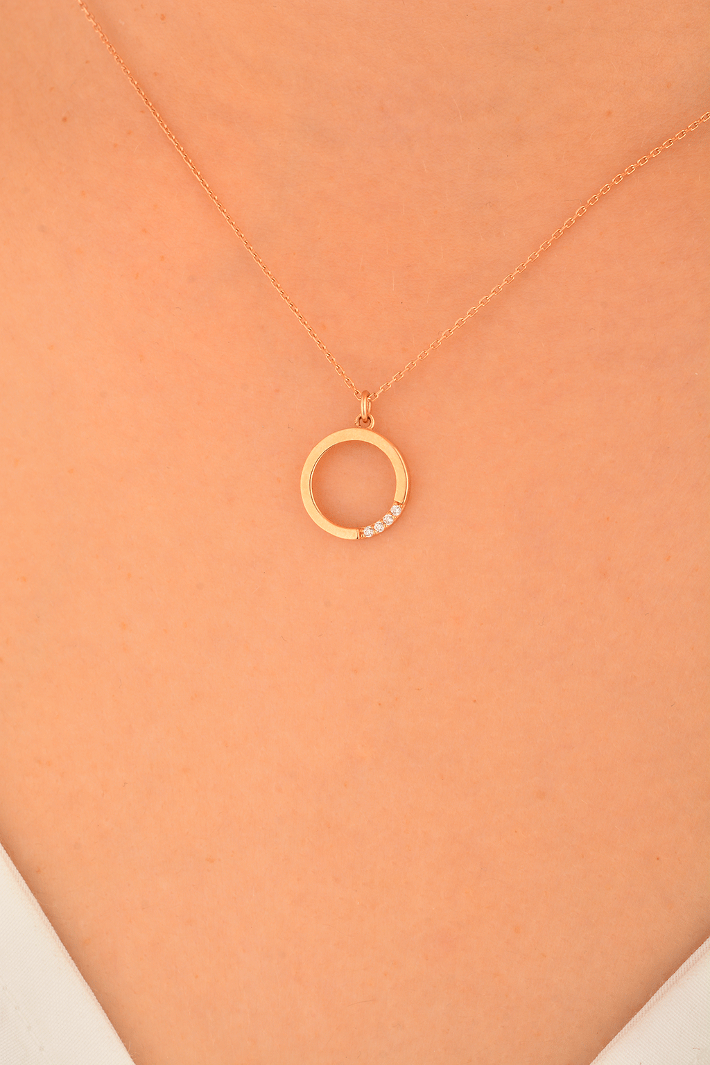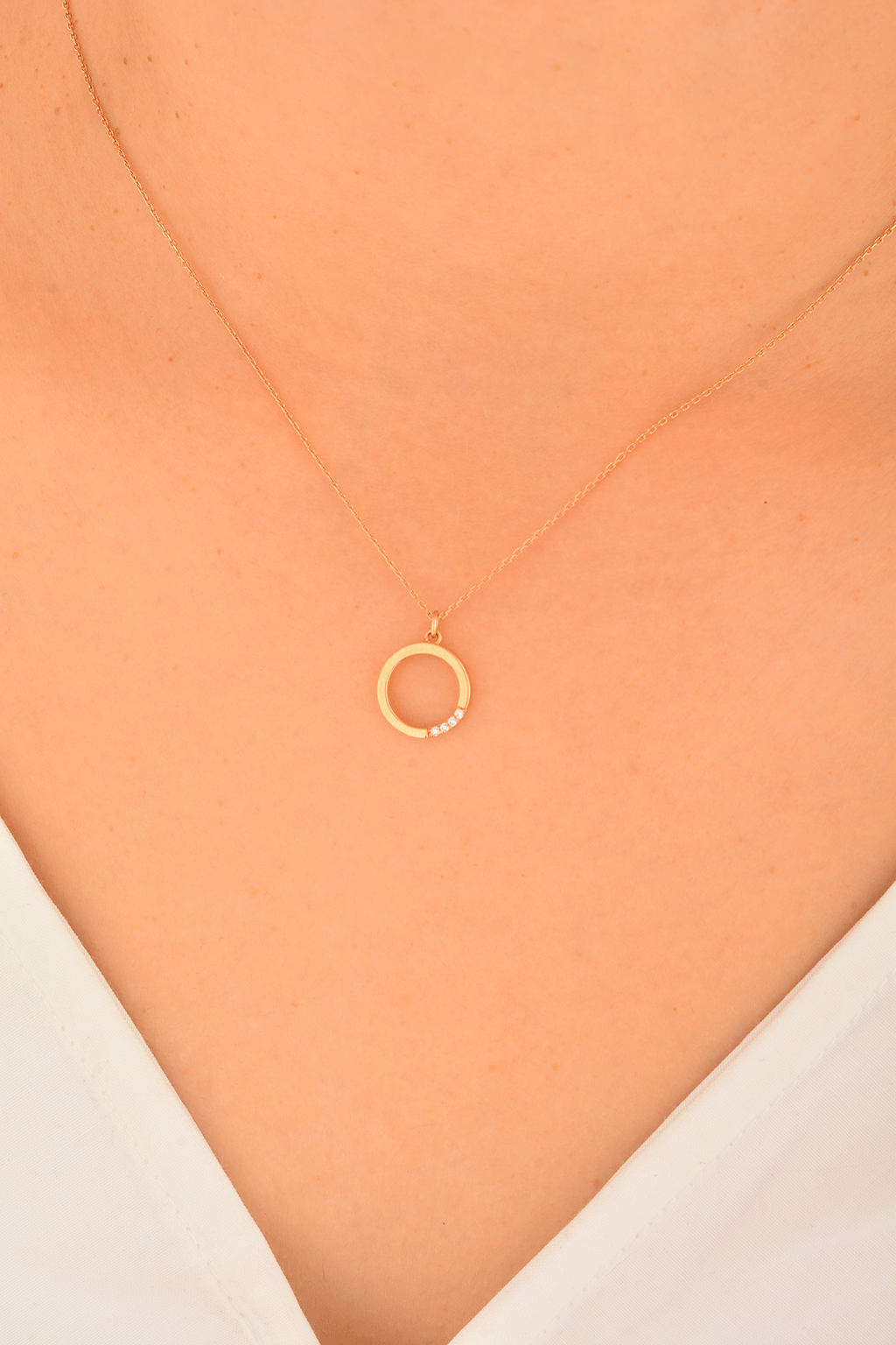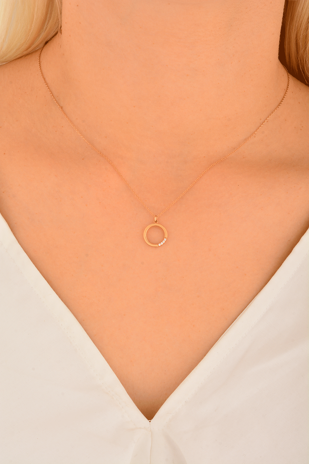 Cebeci 14 Ayar Halka Rose Altın Kolye