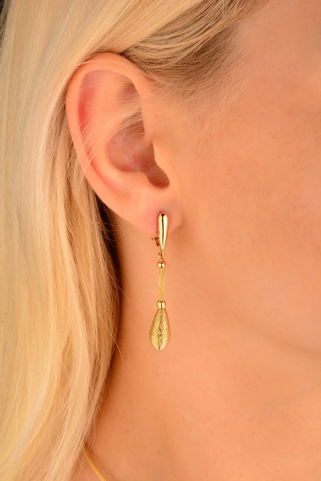 Cebeci 14 Ayar Hasır Damla Altın Küpe