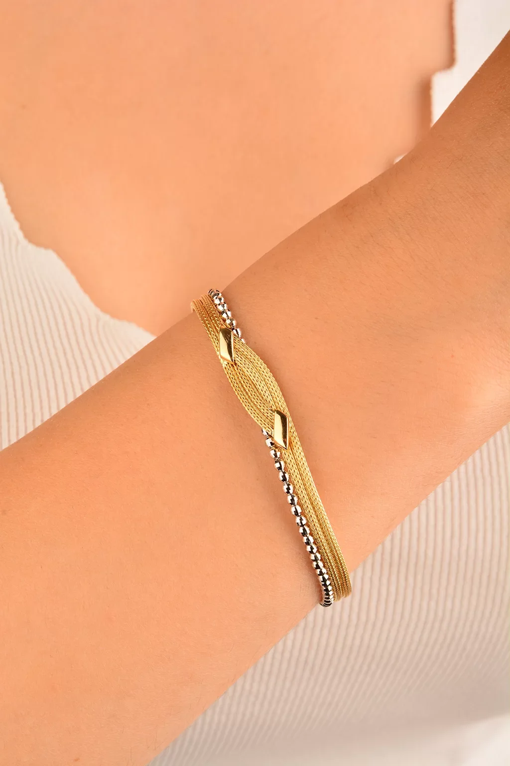 Cebeci 14 Ayar Hasır Zincir Altın Bileklik