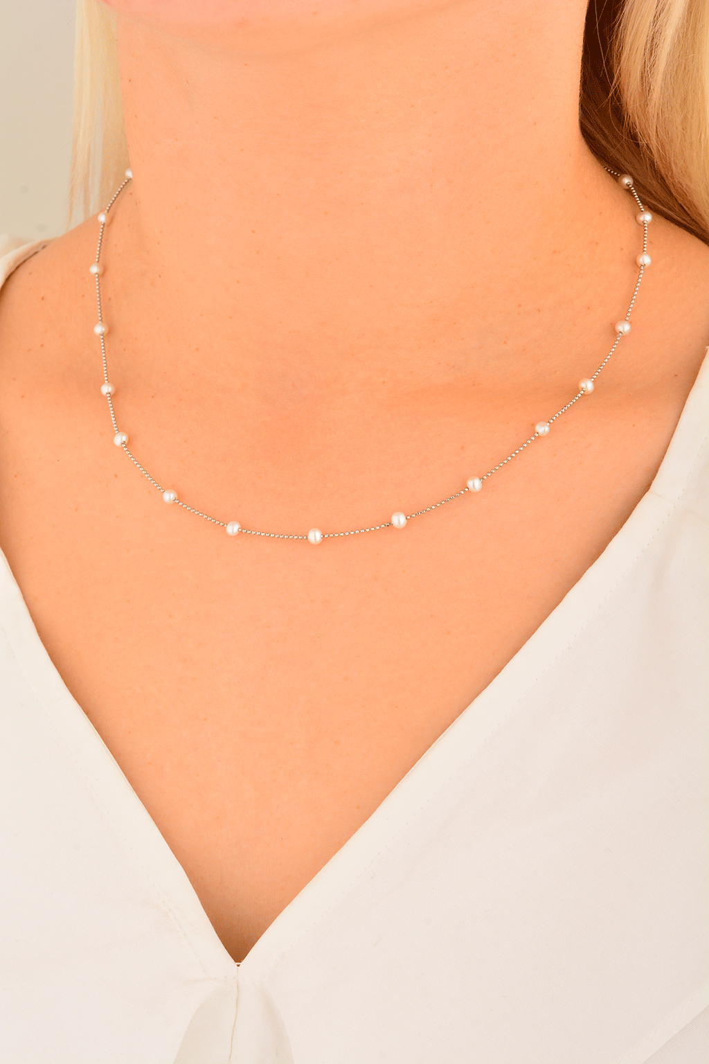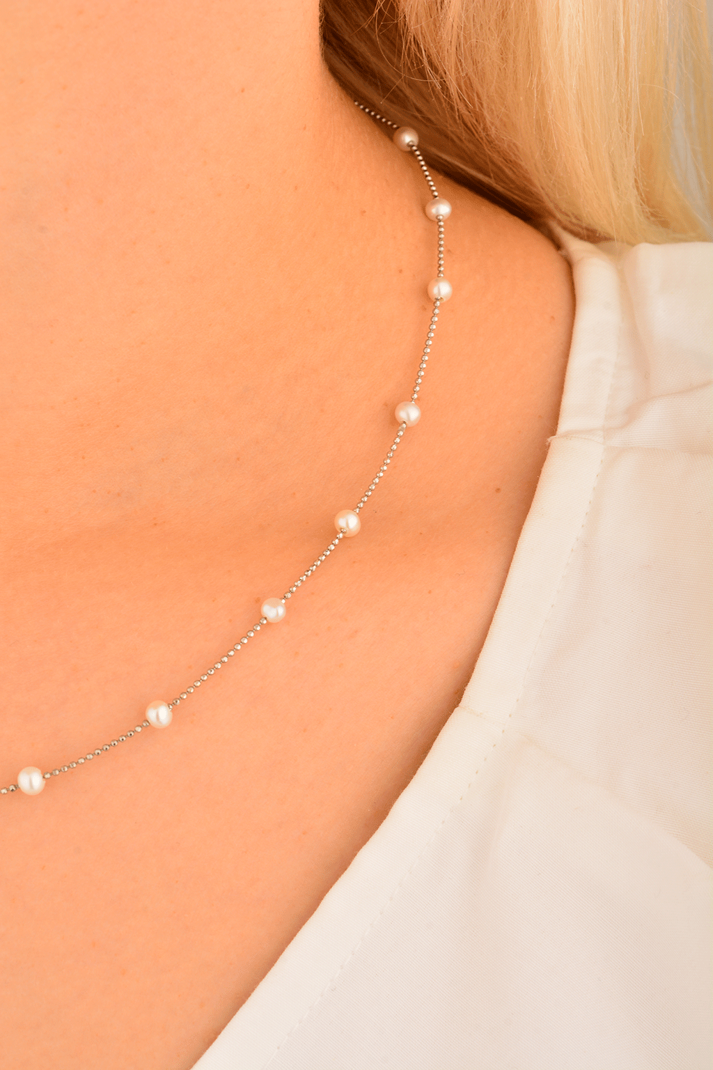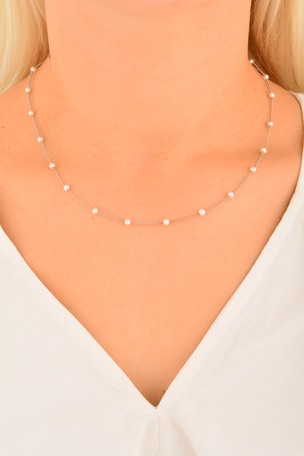 Cebeci 14 Ayar İnci Beyaz Altın Kolye