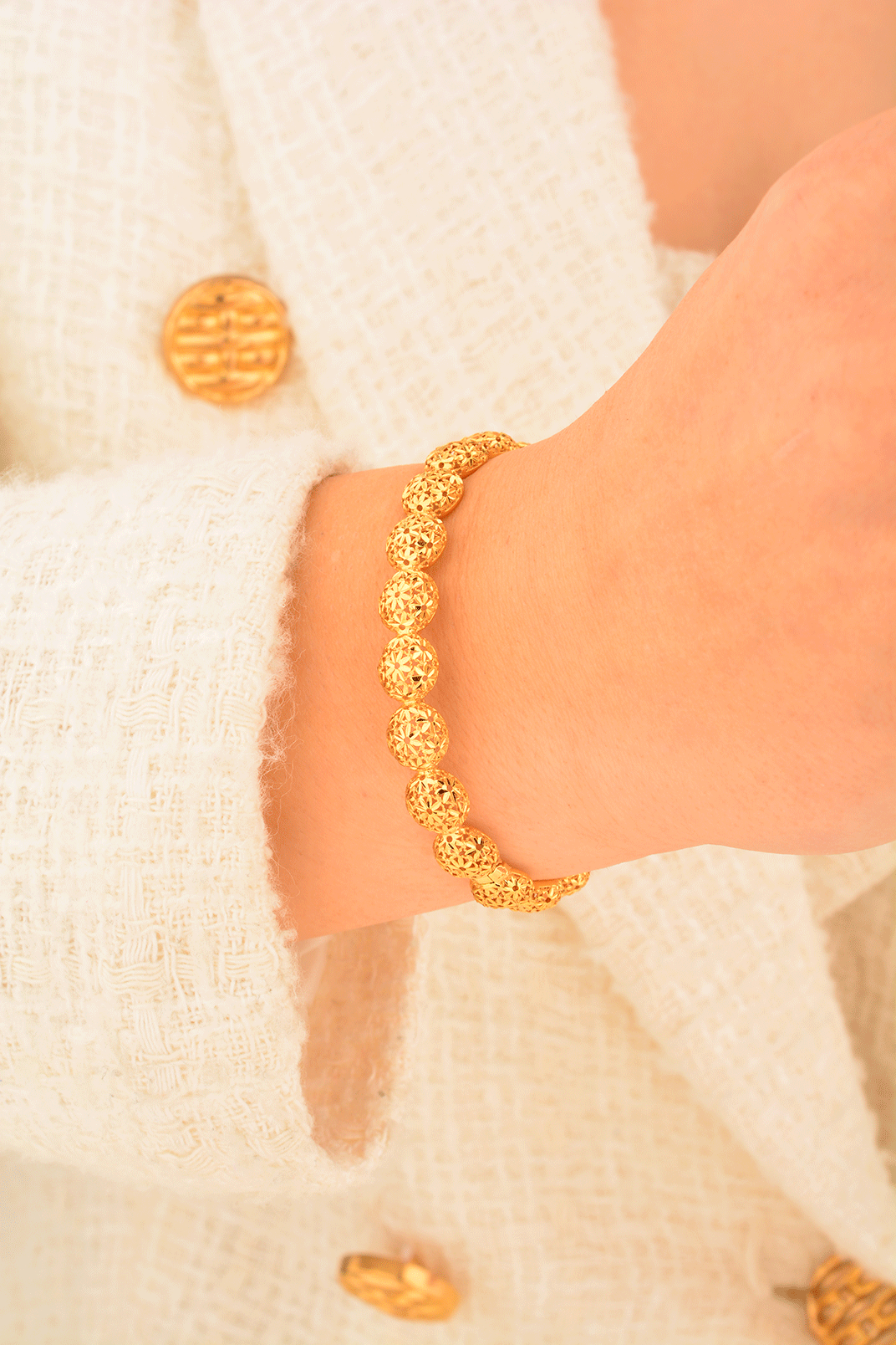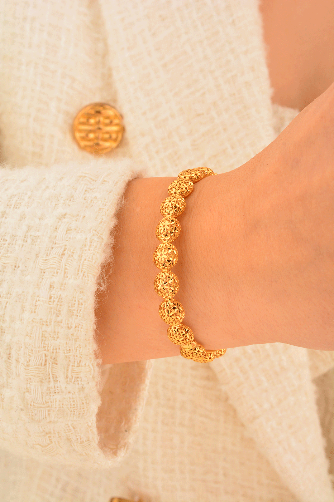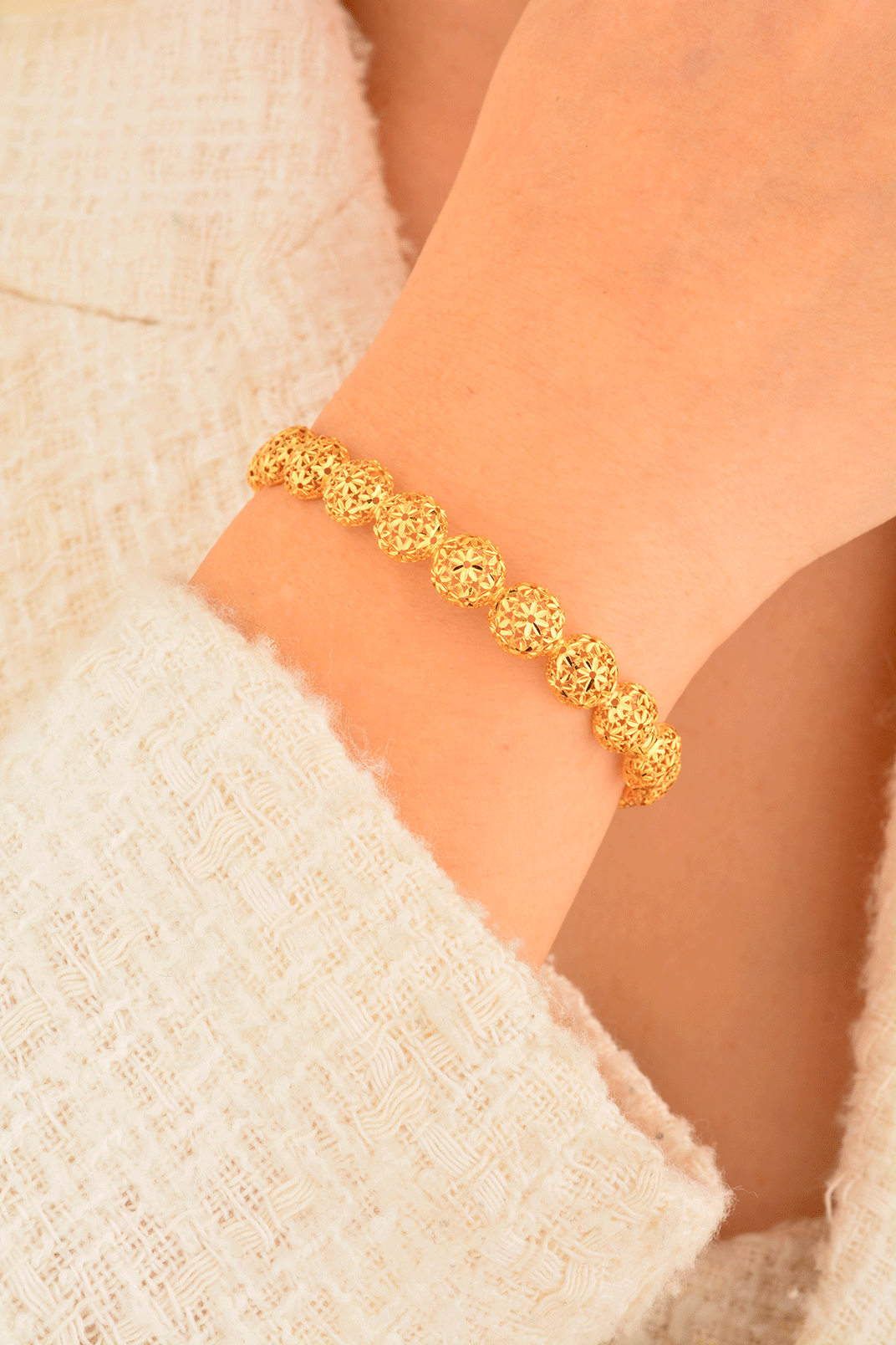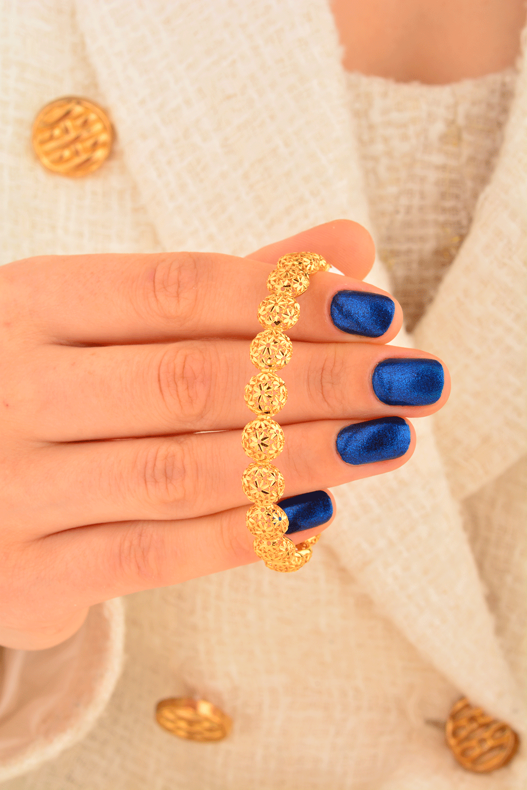 Cebeci 14 Ayar İşlemeli Kelepçe Altın Bilezik