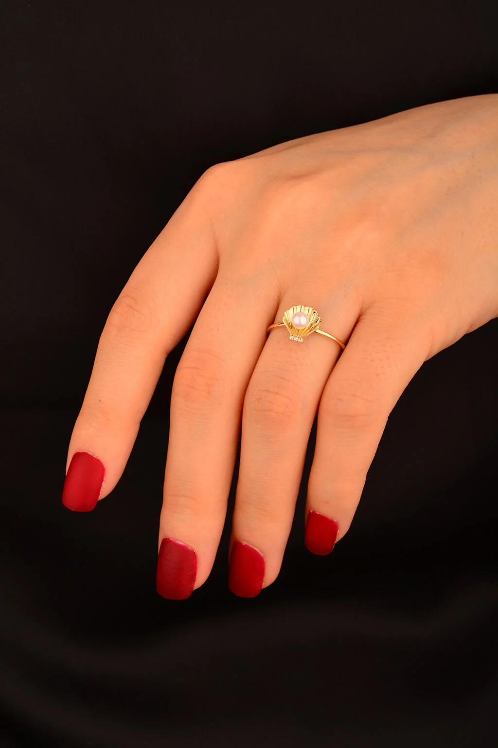 Cebeci 14 Ayar İstiridye Altın Yüzük