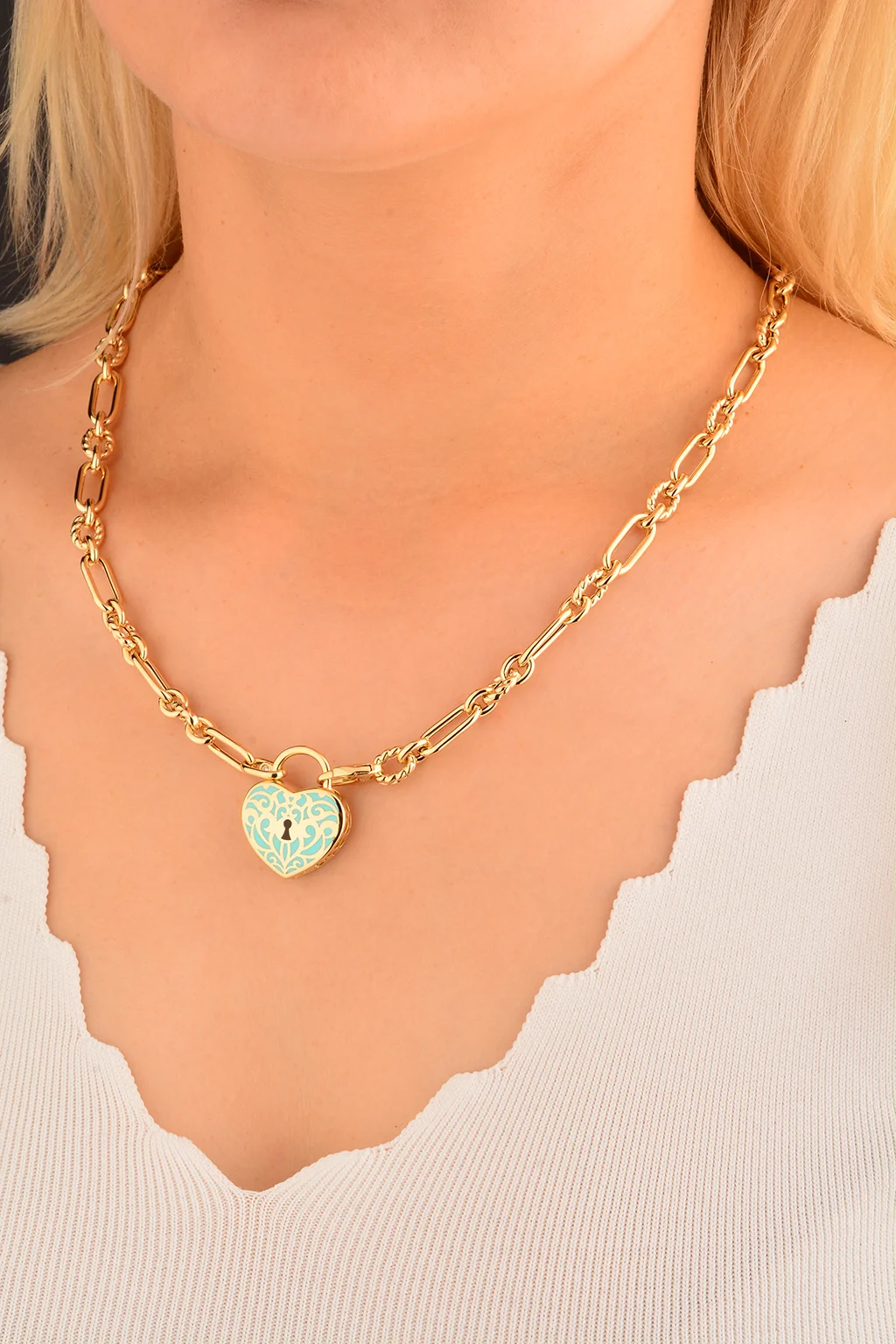 Cebeci 14 Ayar Kalpli Kilit Altın Kolye