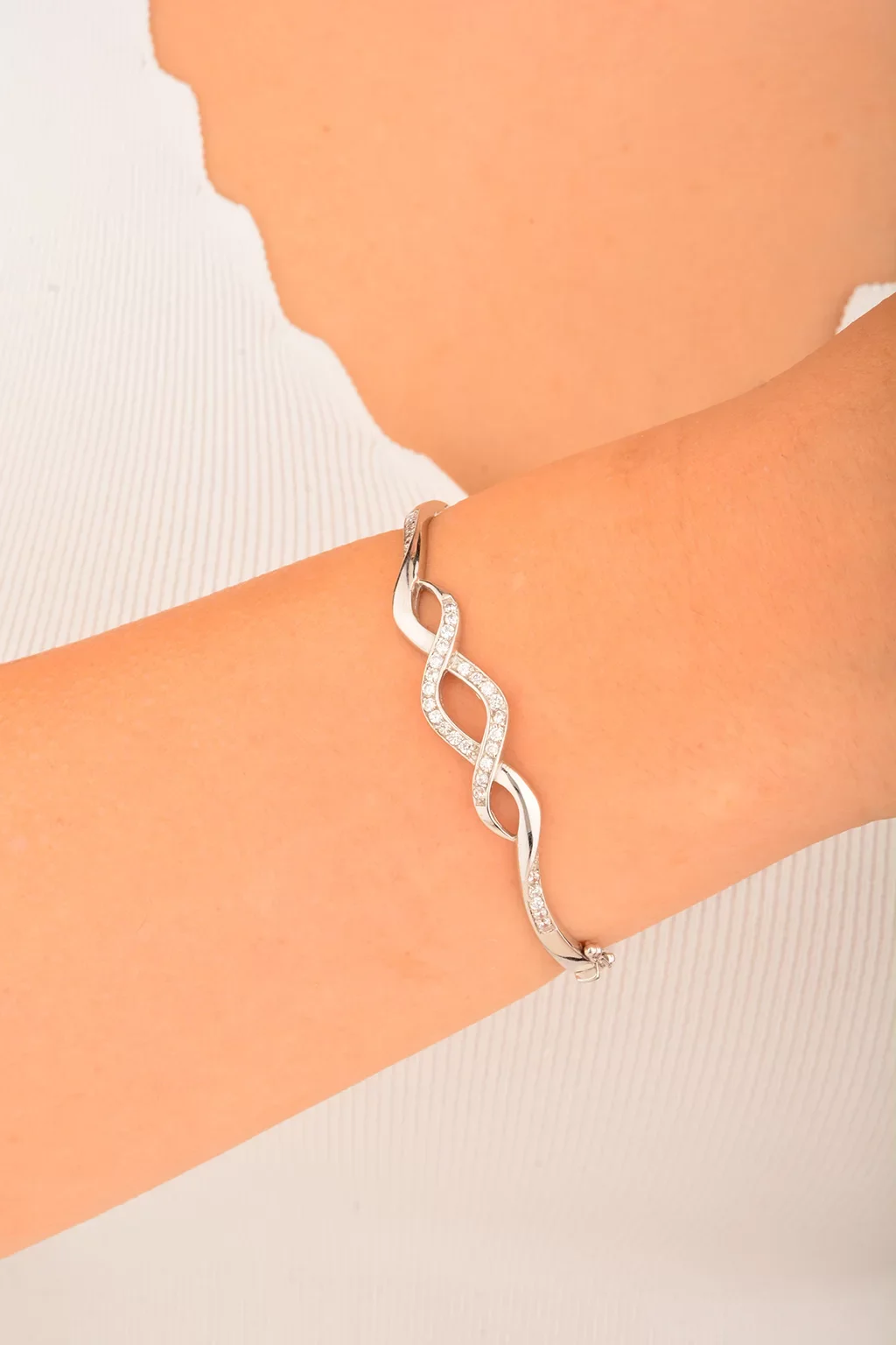 Cebeci 14 Ayar Kelepçeli Beyaz Altın Bilezik