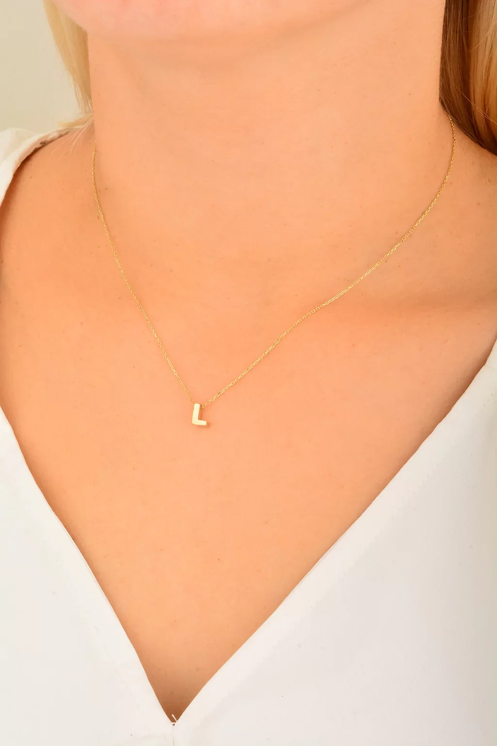 Cebeci 14 Ayar L Harfli Altın Kolye