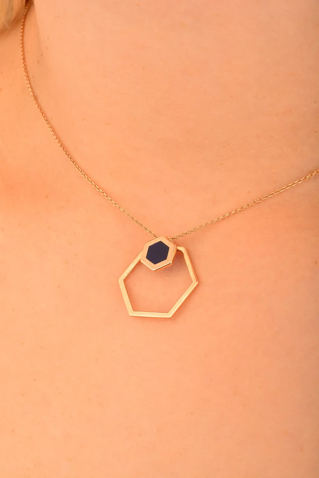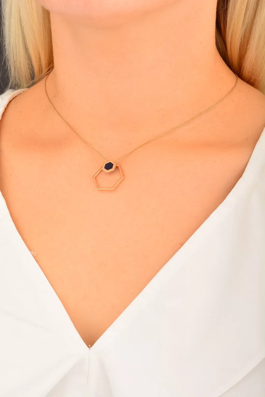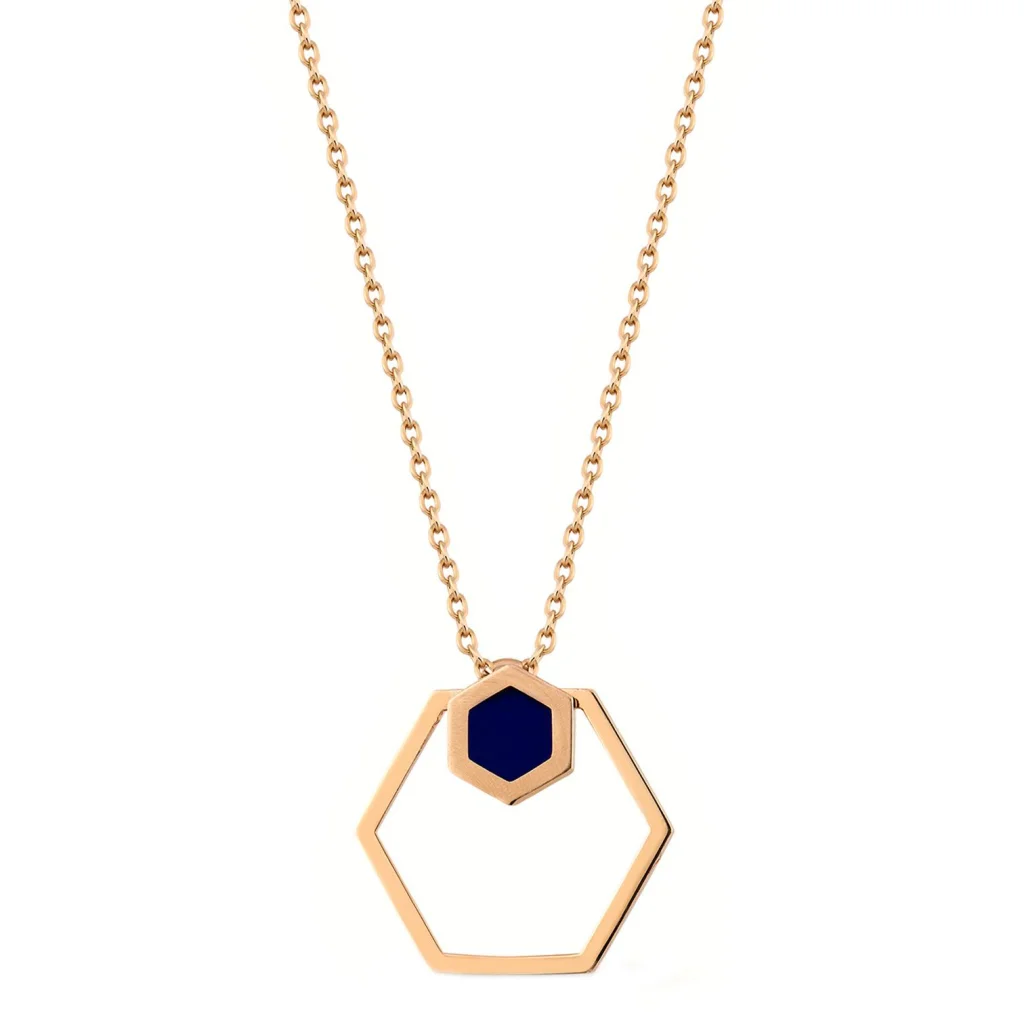 Cebeci 14 Ayar Lacivert Altıgen Rose Altın Kolye