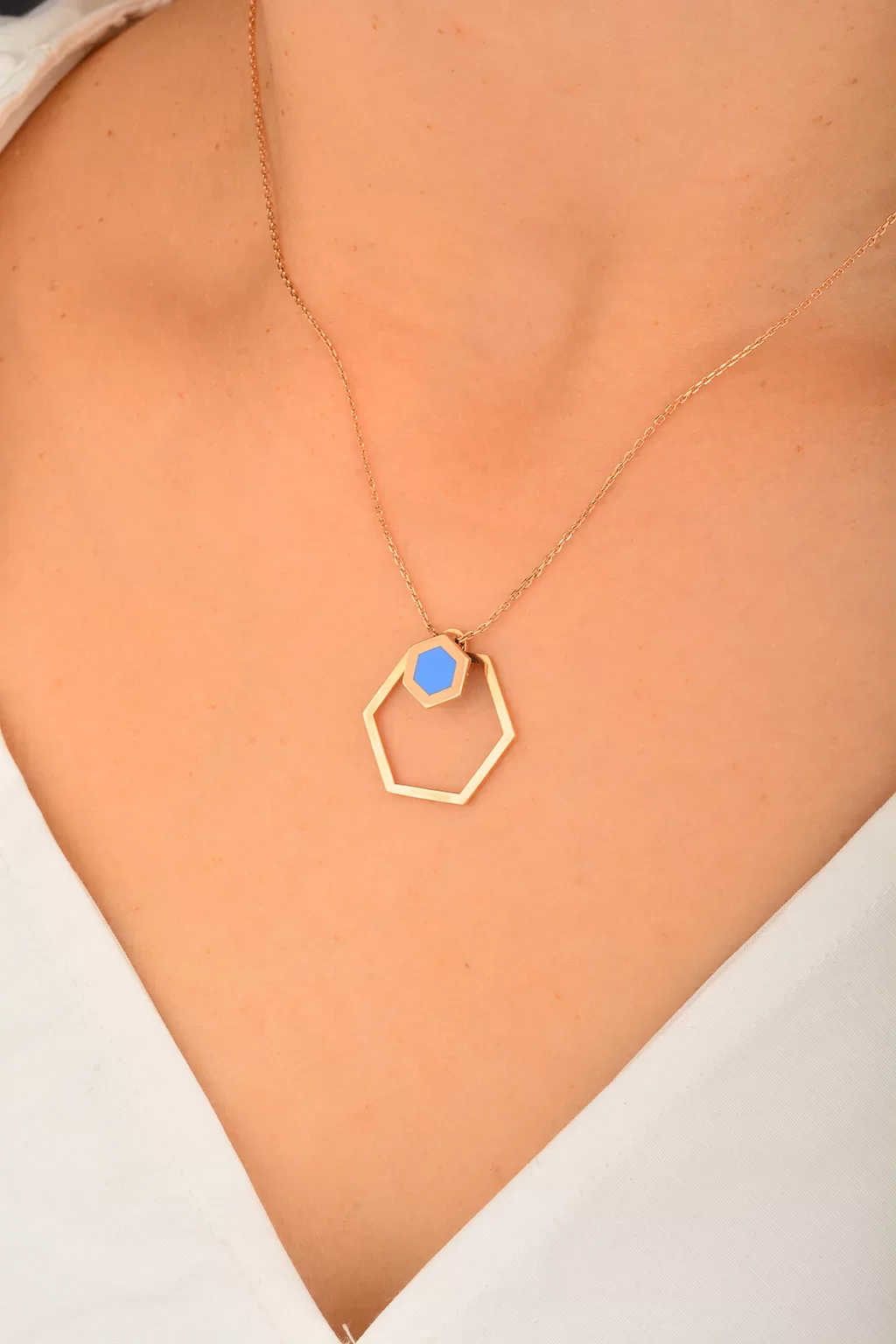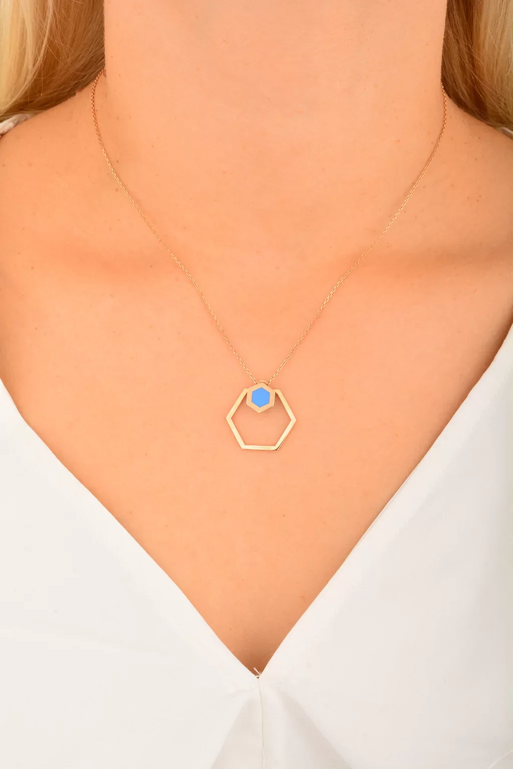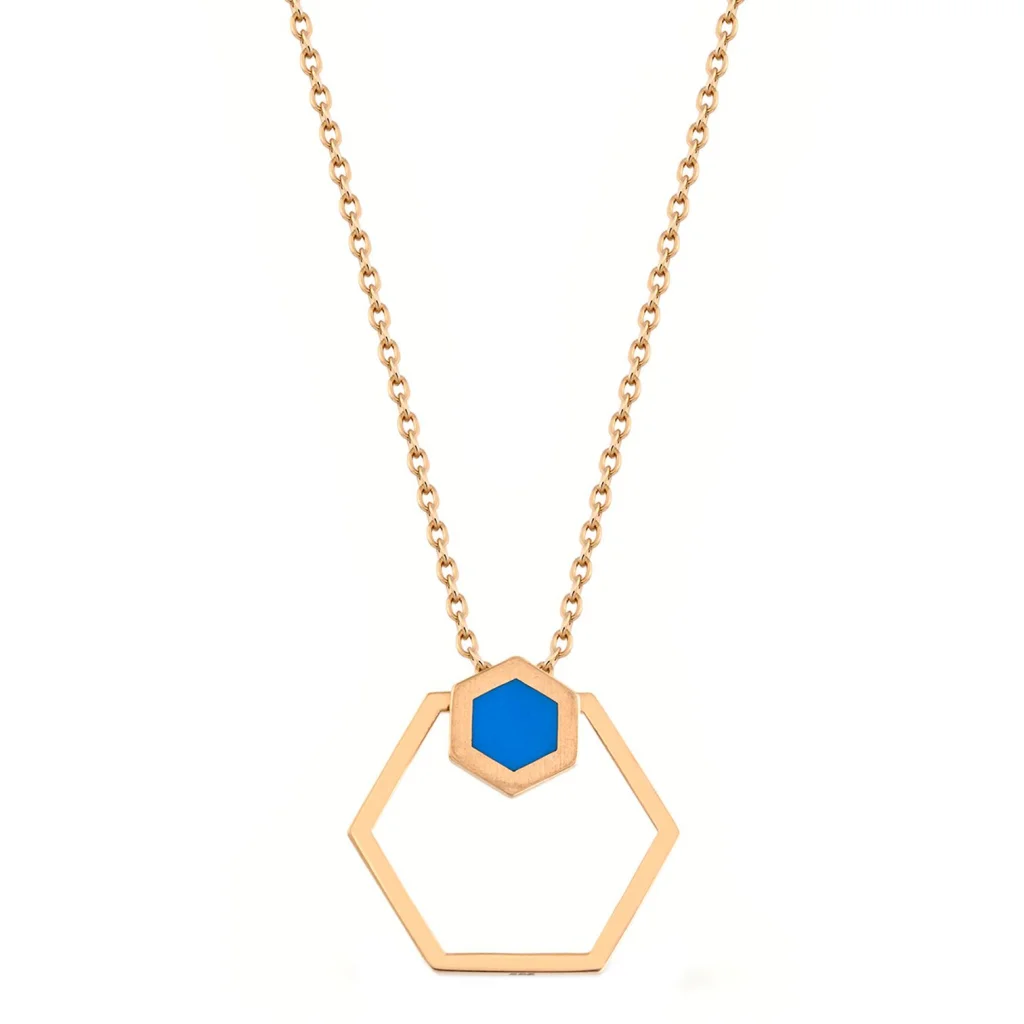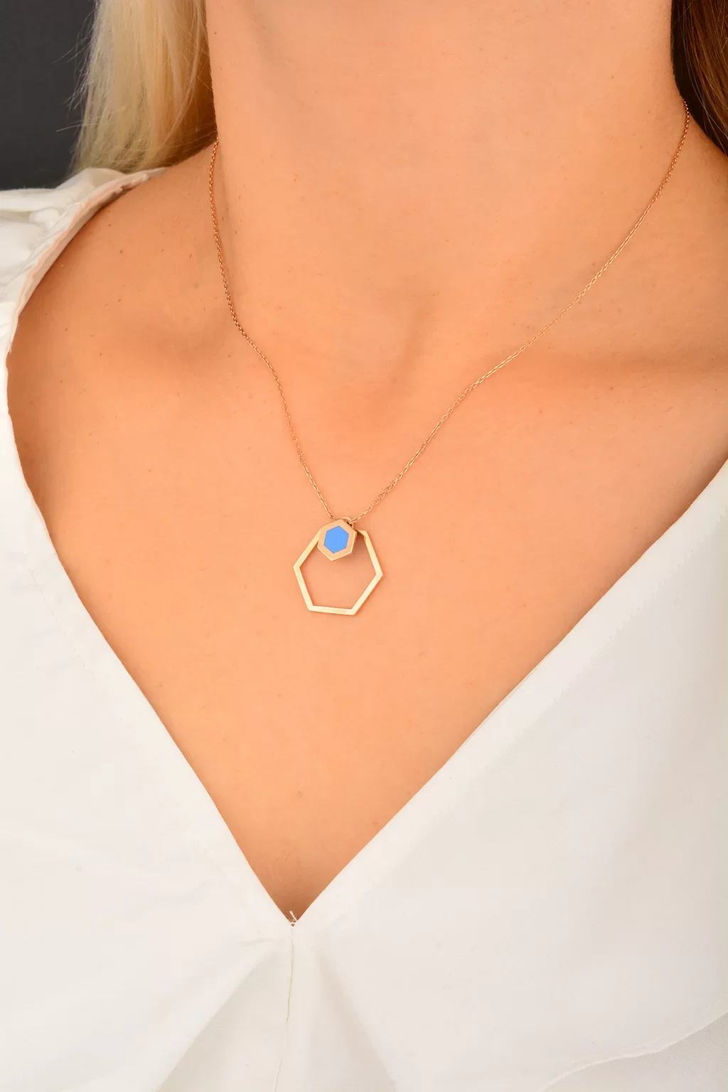 Cebeci 14 Ayar Mavi Altıgen Rose Altın Kolye
