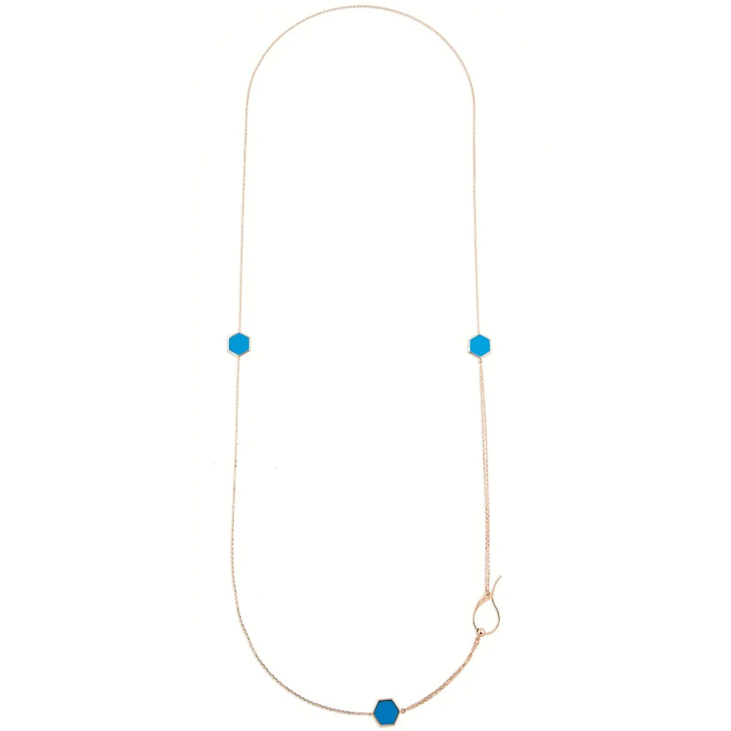 Cebeci 14 Ayar Mavi Altıgen Rose Altın Kolye