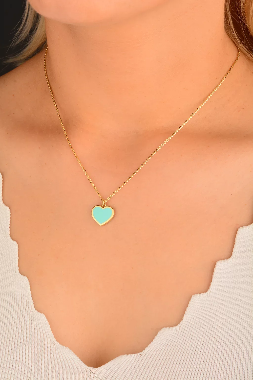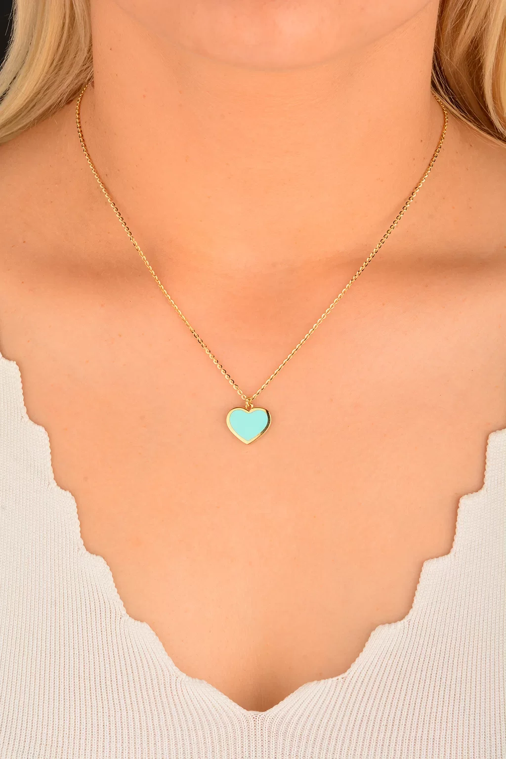 Cebeci 14 Ayar Mavi Kalpli Altın Kolye