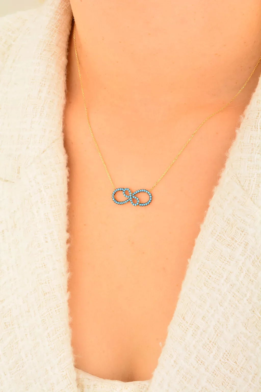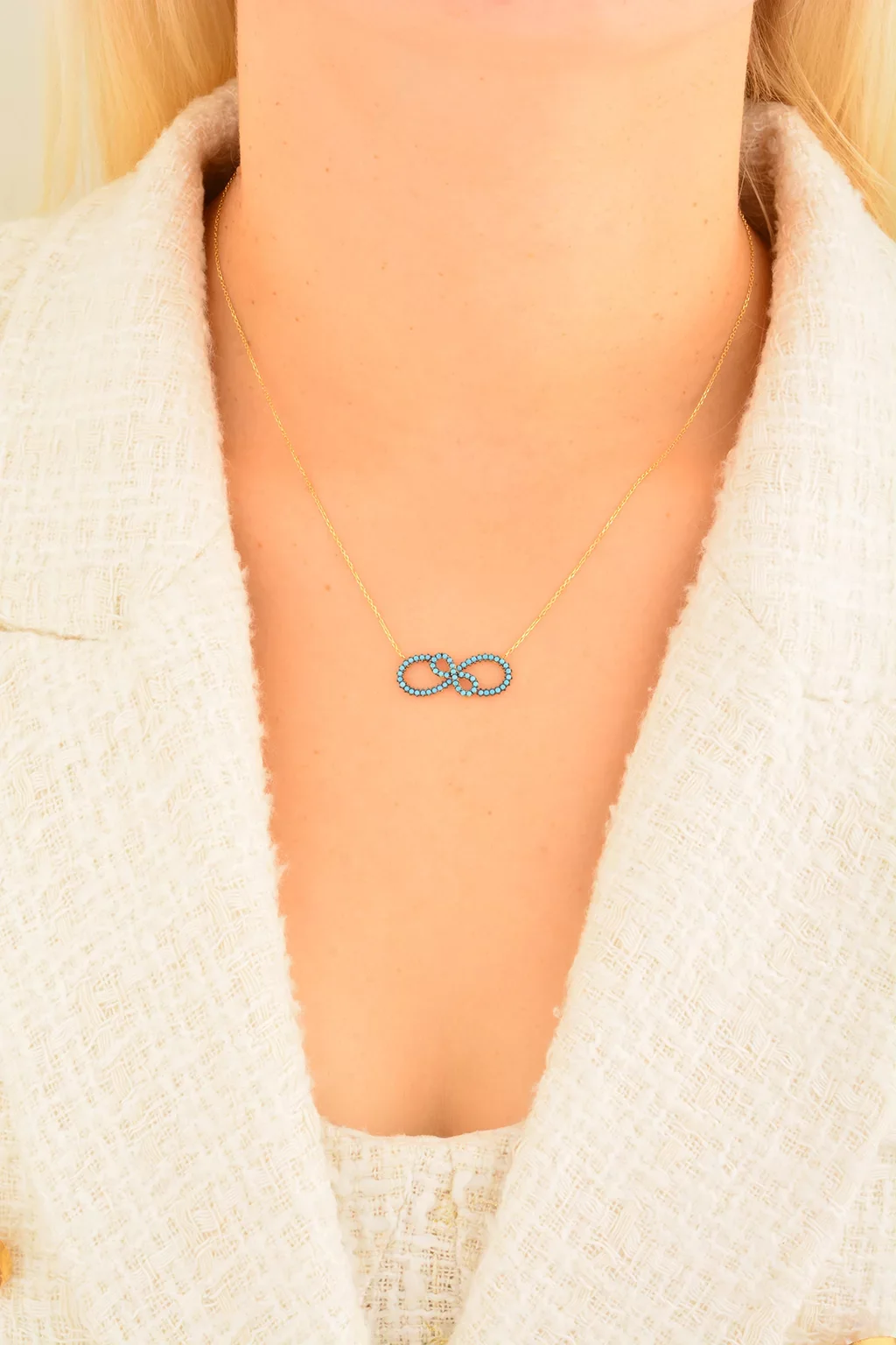 Cebeci 14 Ayar Mavi Sonsuzluk Altın Kolye