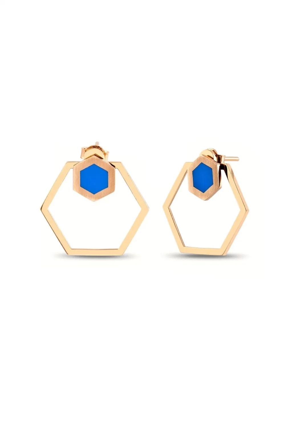 Cebeci 14 Ayar Mavi Taşlı Rose Altın Küpe