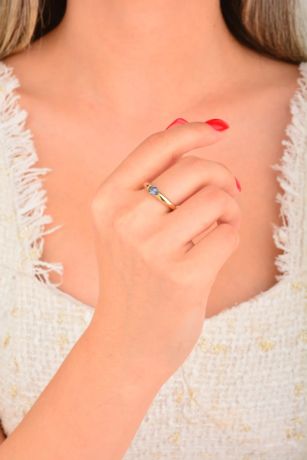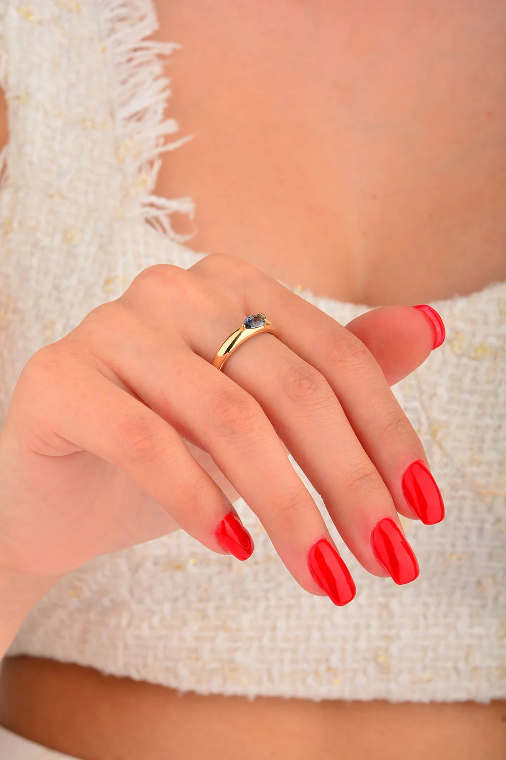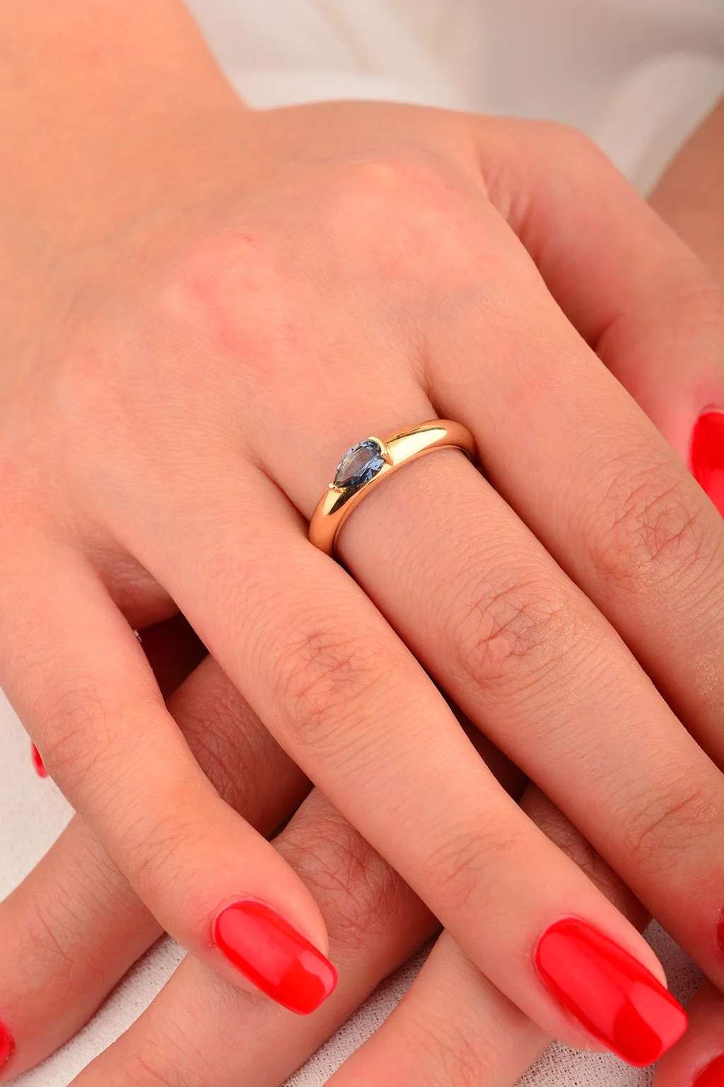 Cebeci 14 Ayar Mavi Damla Taşlı Altın Yüzük