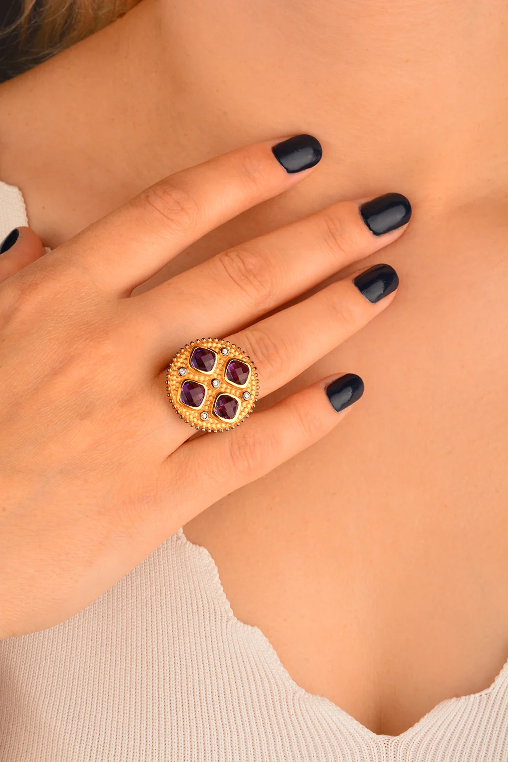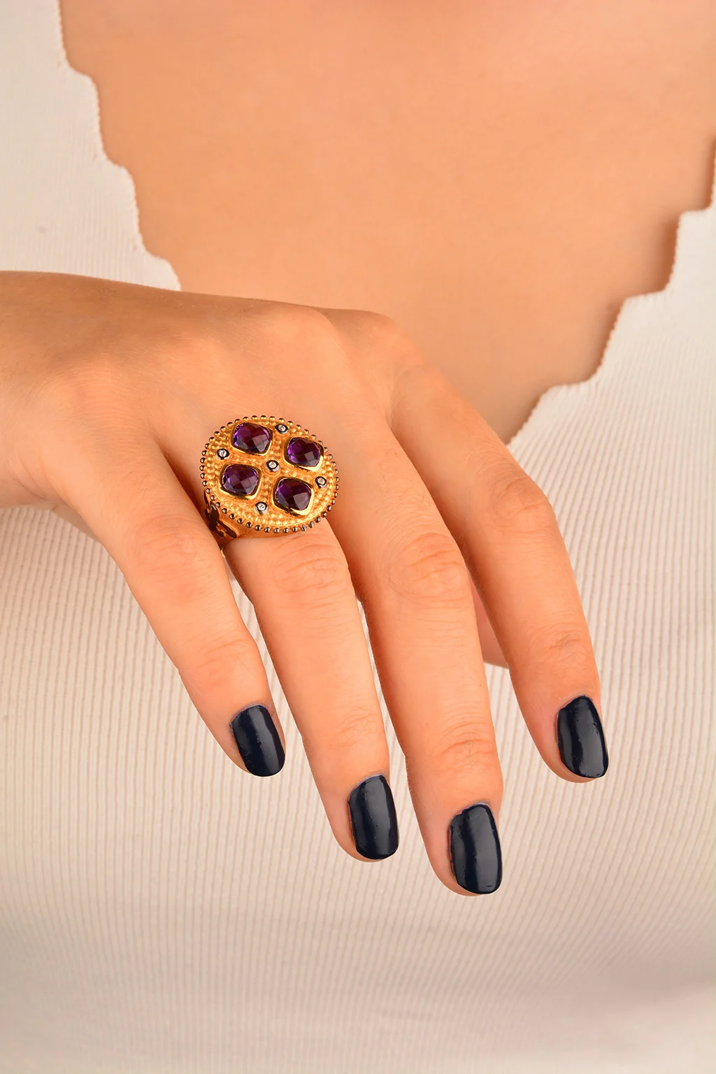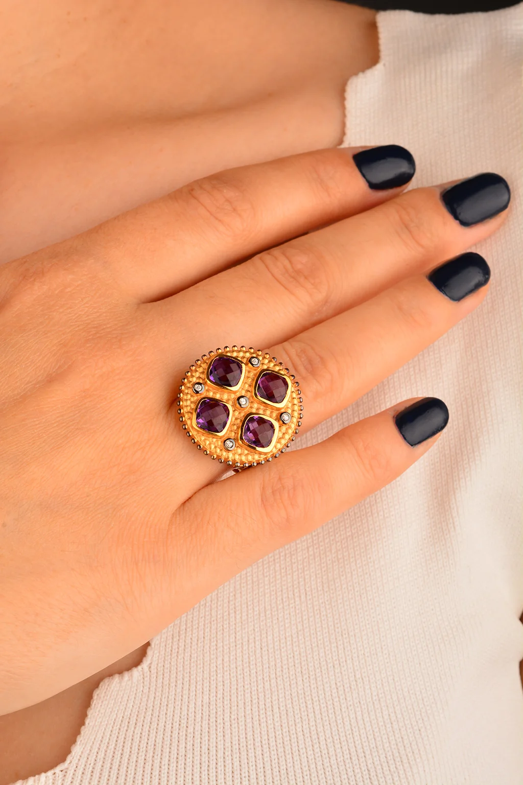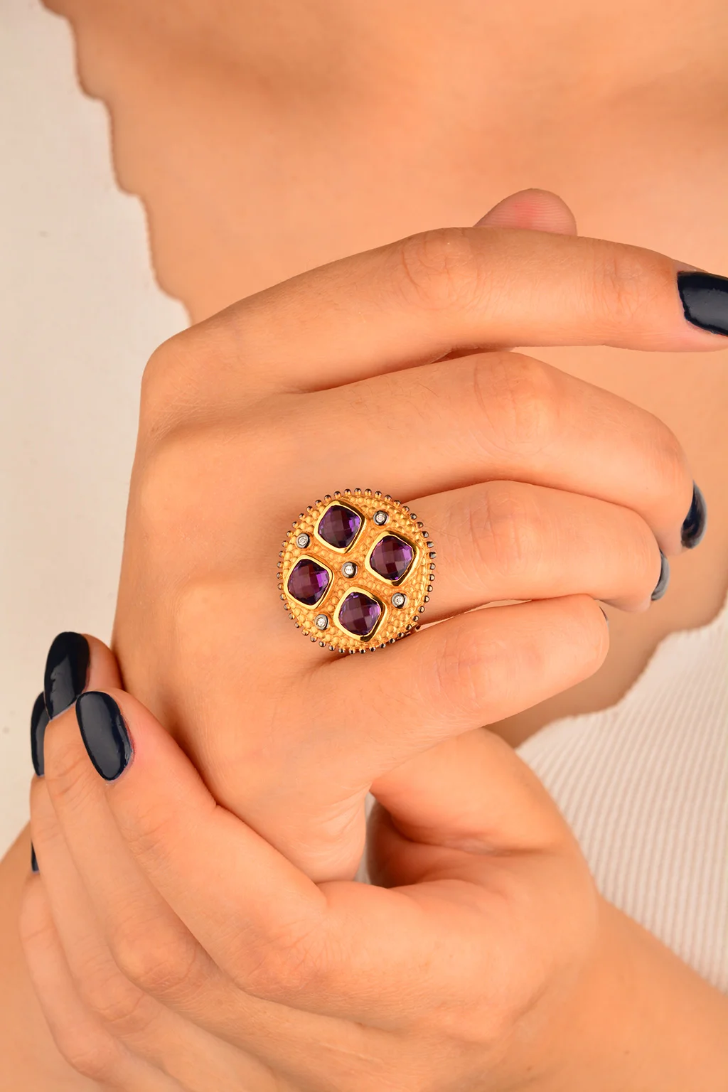 Cebeci 14 Ayar Mor Taşlı Altın Yüzük