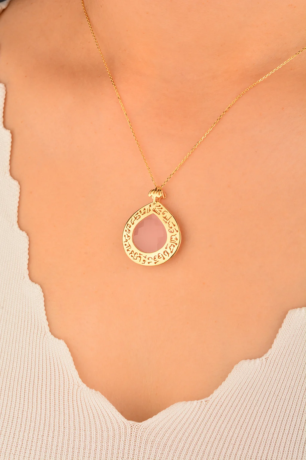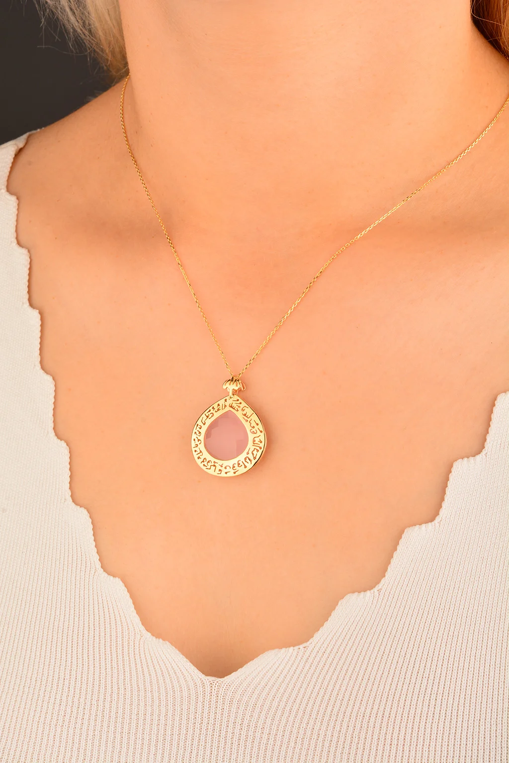 Cebeci 14 Ayar Nazarlı Kuvars Altın Kolye