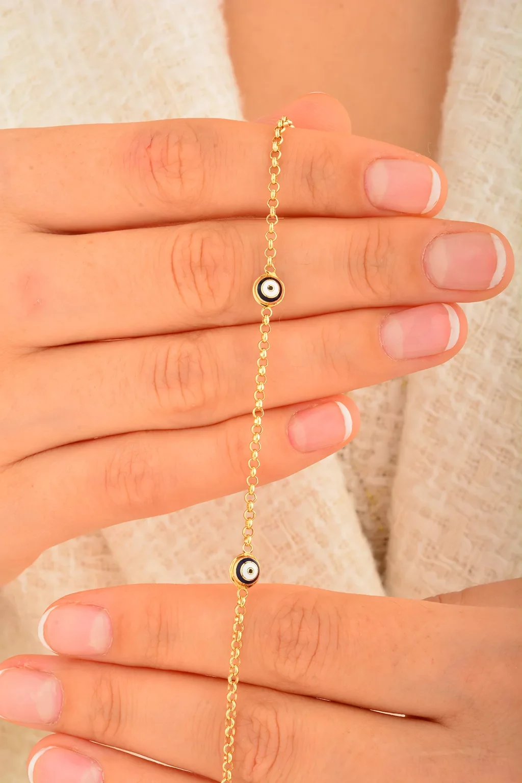 Cebeci 14 Ayar Nazarboncuklu Altın Bileklik