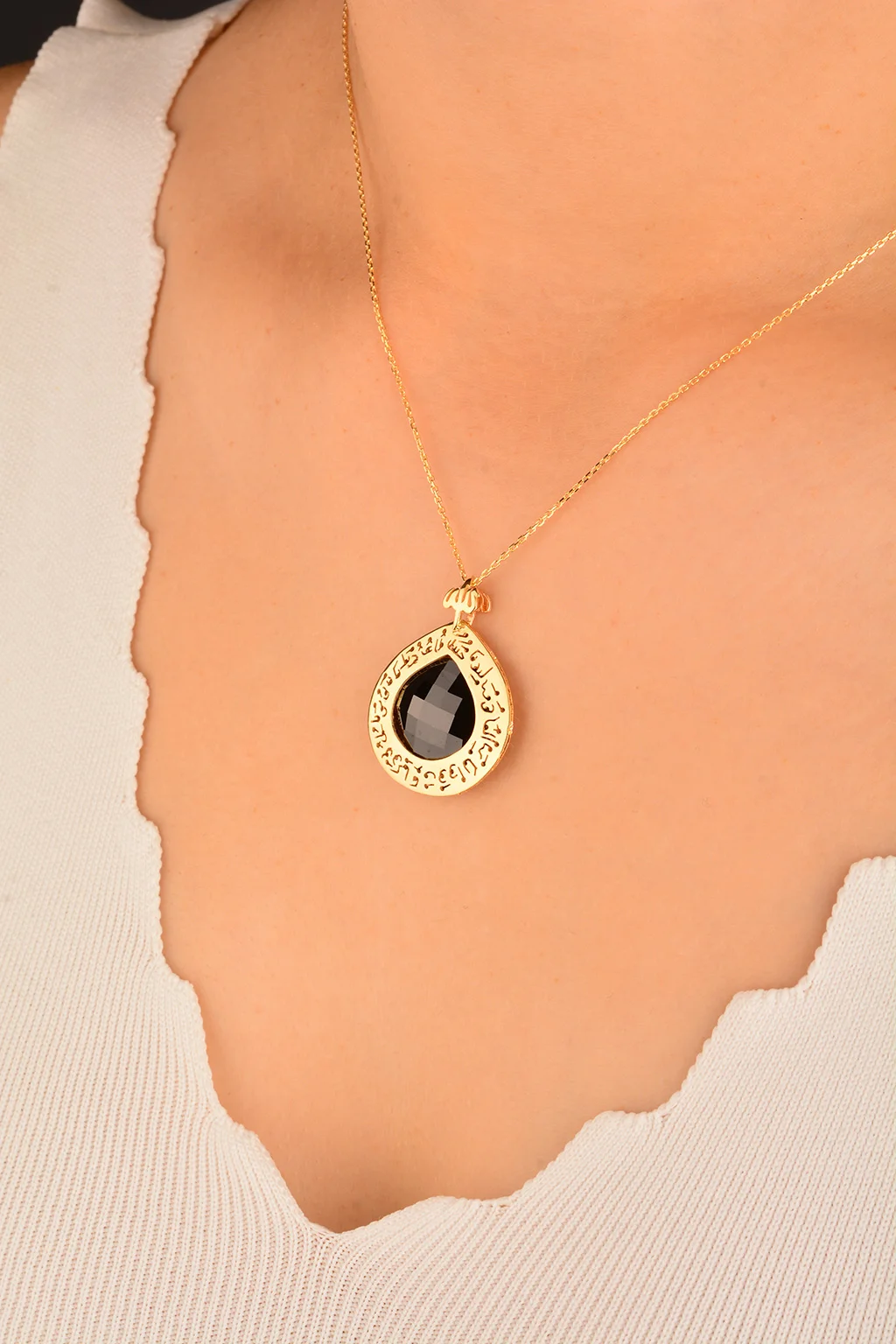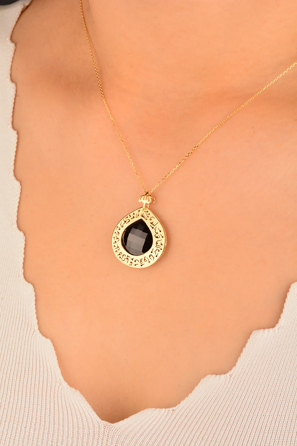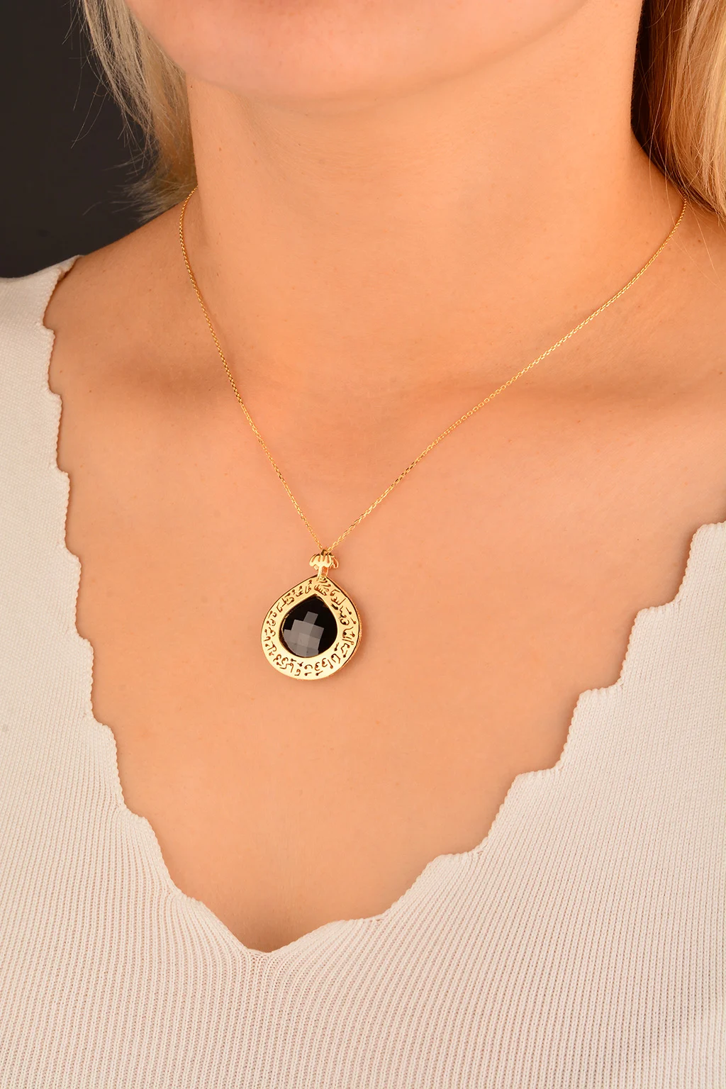 Cebeci 14 Ayar Oniks Taşlı Altın Kolye