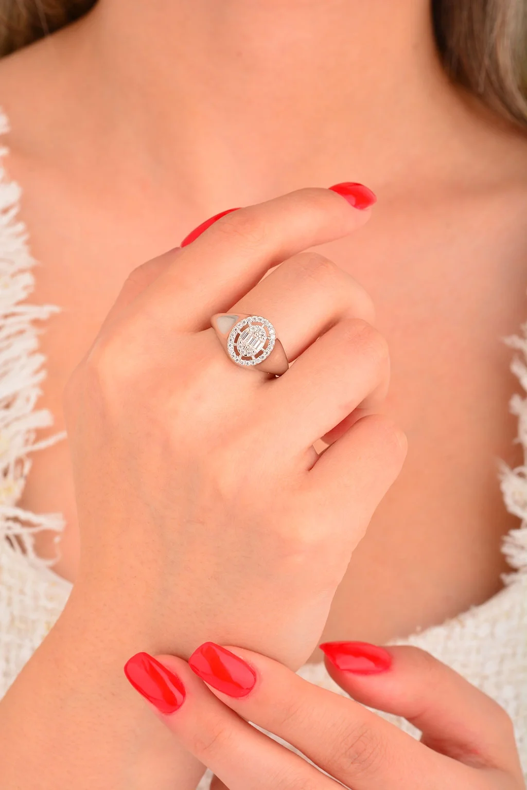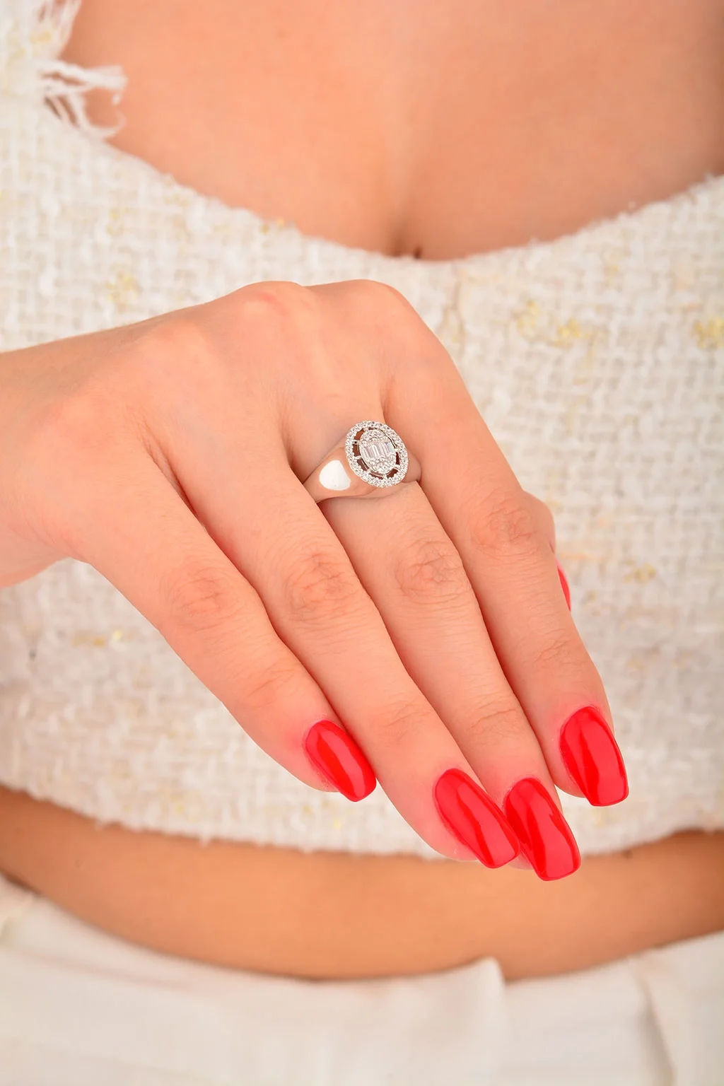 Cebeci 14 Ayar Oval Baget Taşlı Altın Yüzük