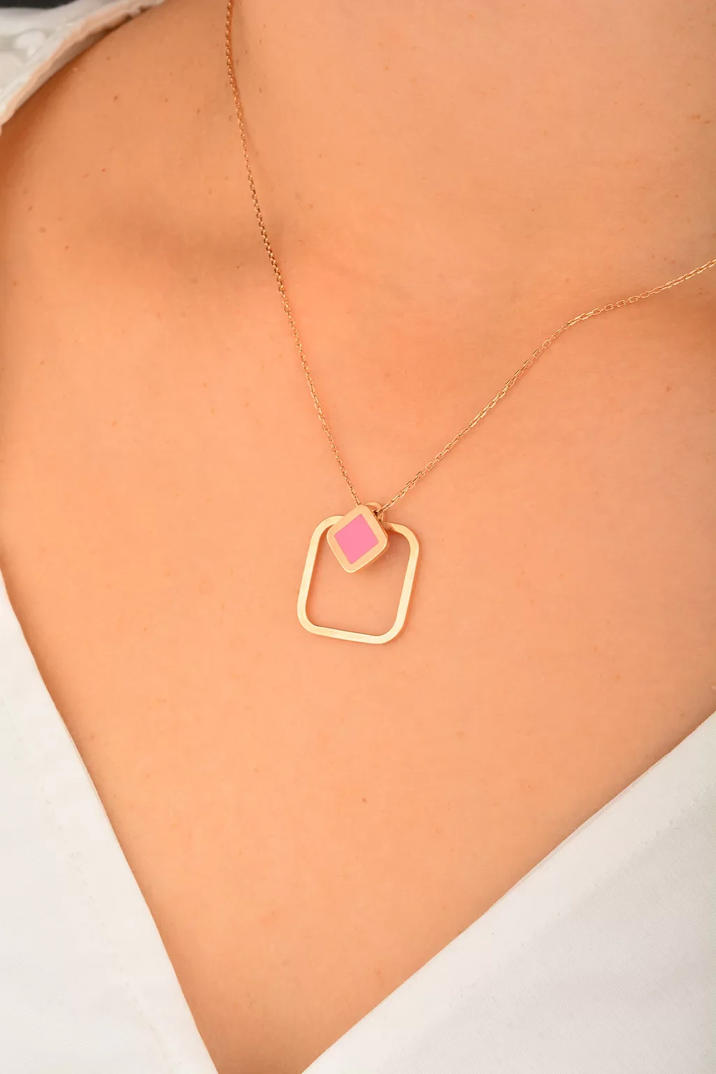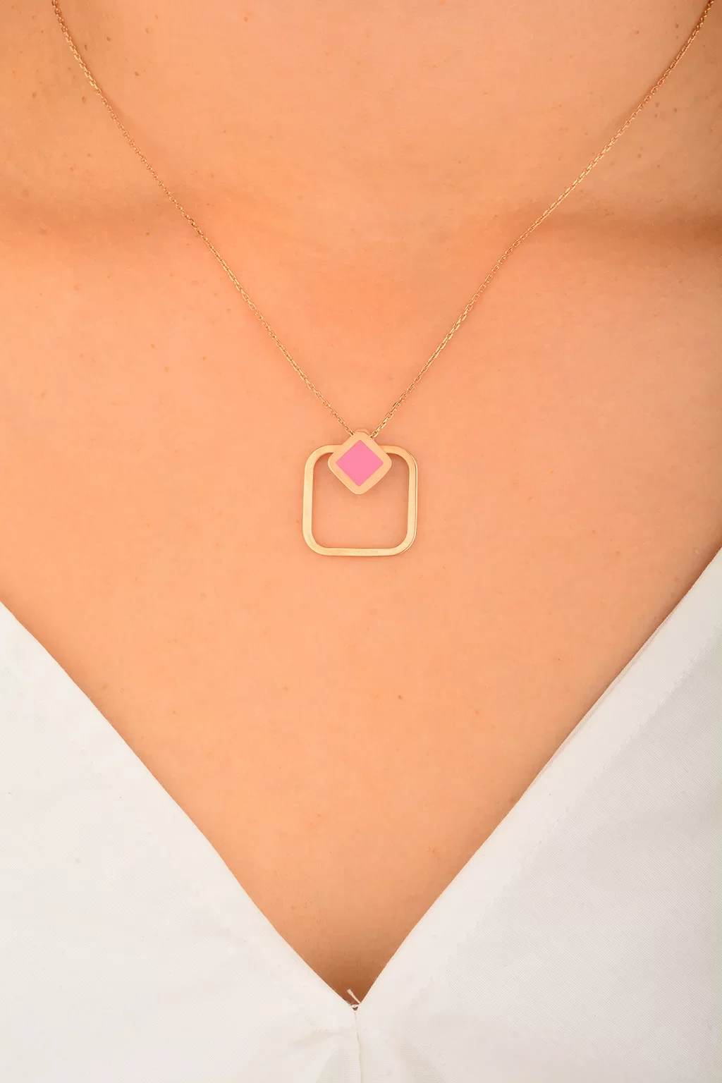 Cebeci 14 Ayar Pembe Kare Rose Altın Kolye