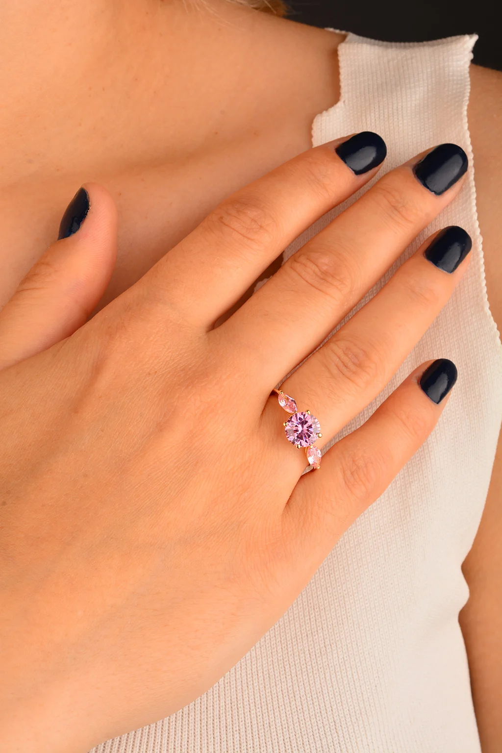 Cebeci 14 Ayar Pembe Taşlı Altın Yüzük