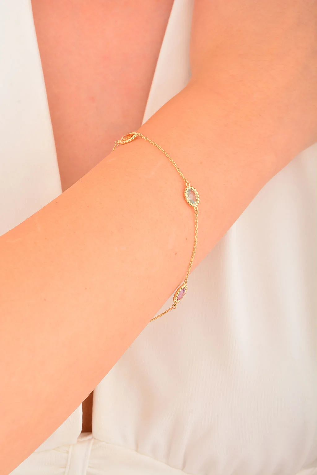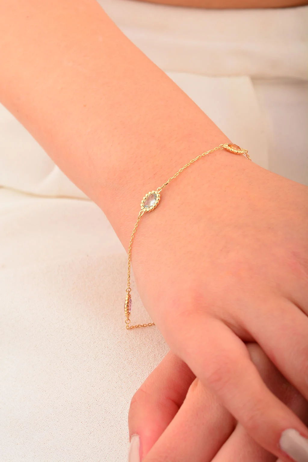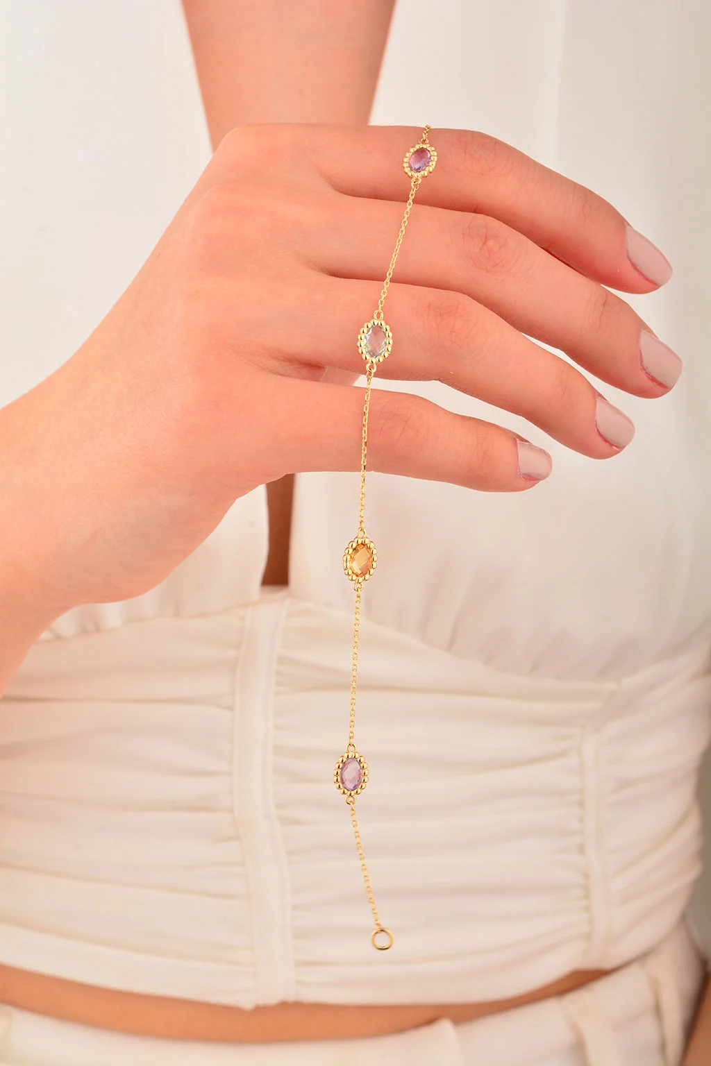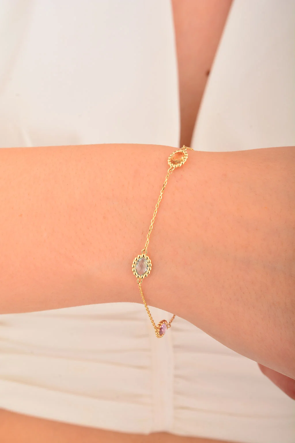 Cebeci 14 Ayar Renkli Taşlı Altın Bileklik
