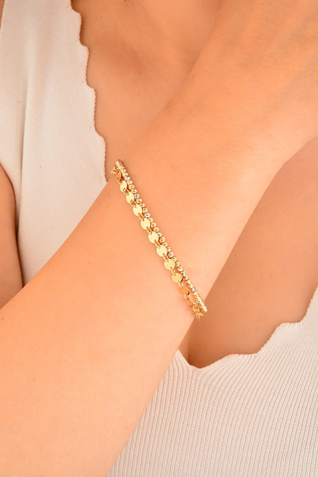 Cebeci 14 Ayar Dorikalı Pullu Altın Bileklik