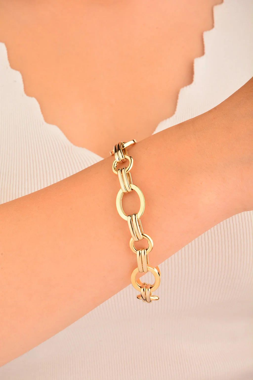 Cebeci 14 Ayar Renkli Halkalı Altın Bileklik