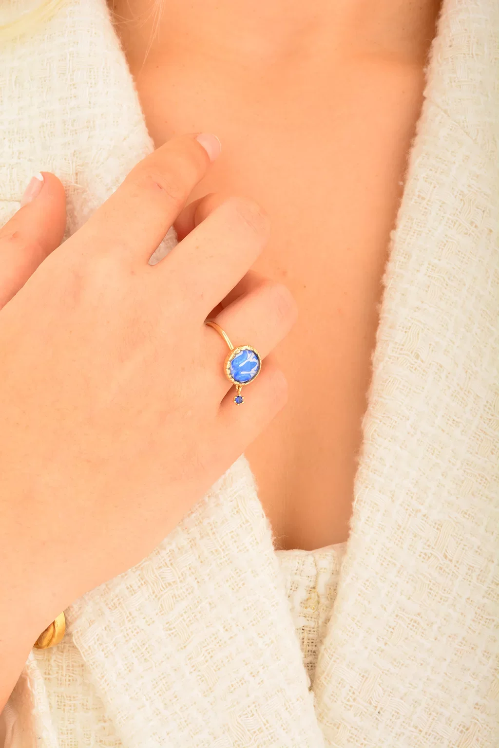 Cebeci 14 Ayar Renkli Taşlı Altın Yüzük