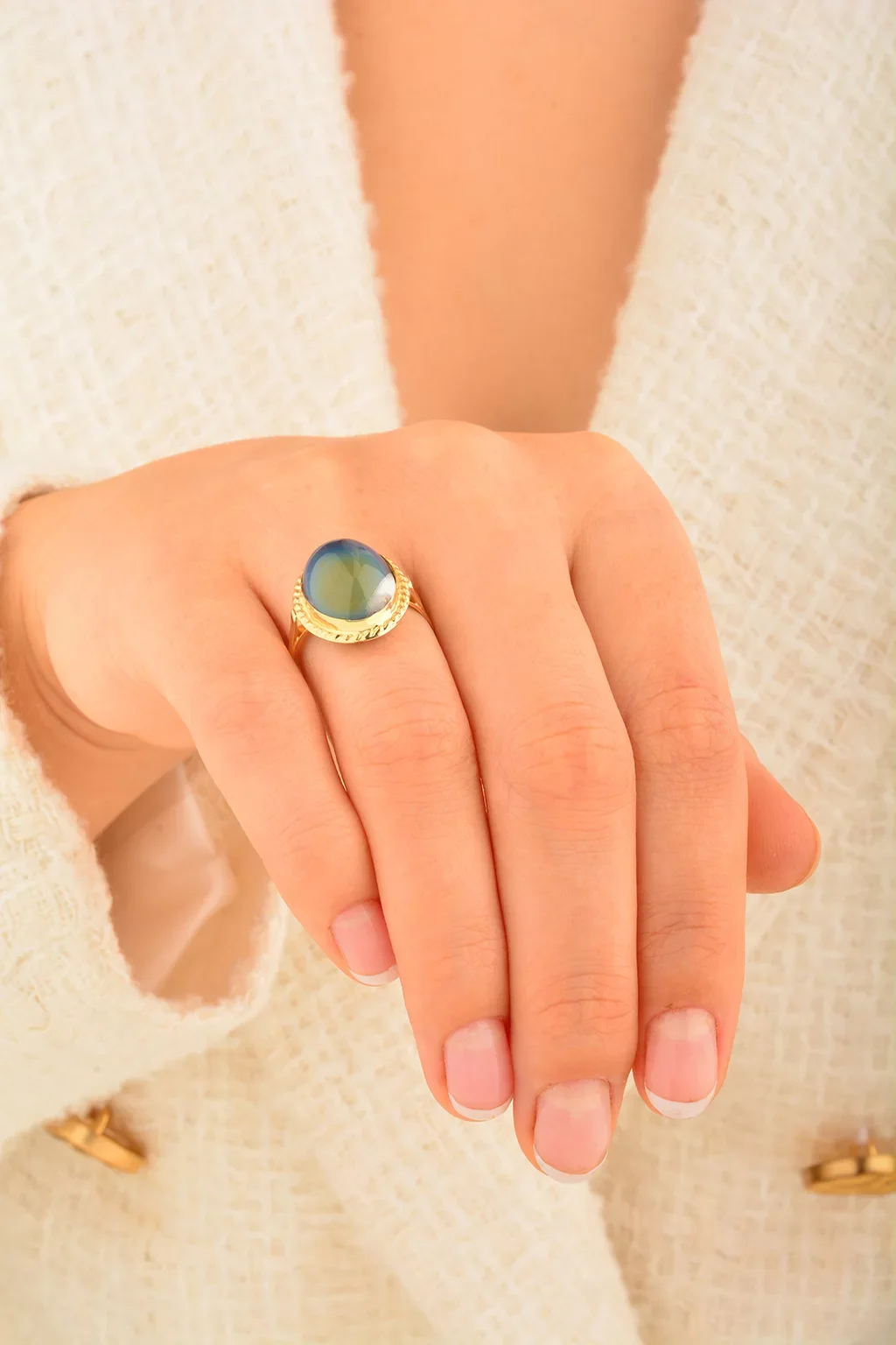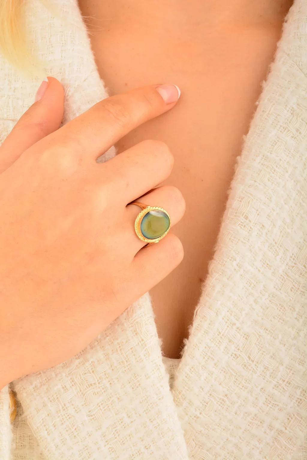 Cebeci 14 Ayar Renkli Taşlı Altın Yüzük