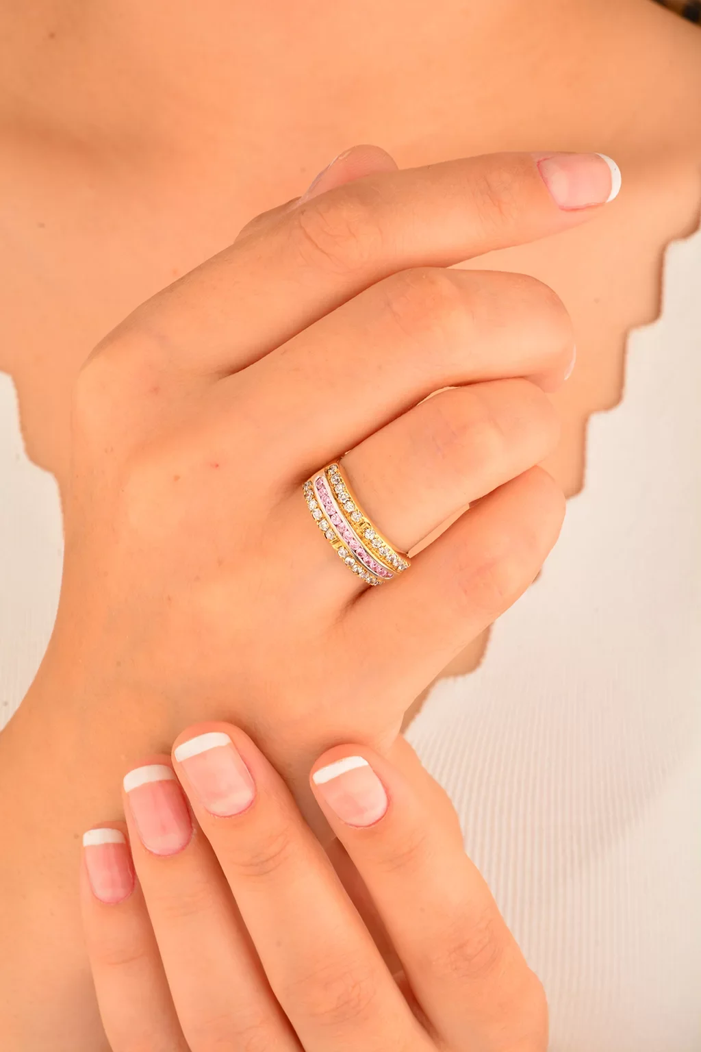 Cebeci 14 Ayar Renkli Taşlı Yüzük