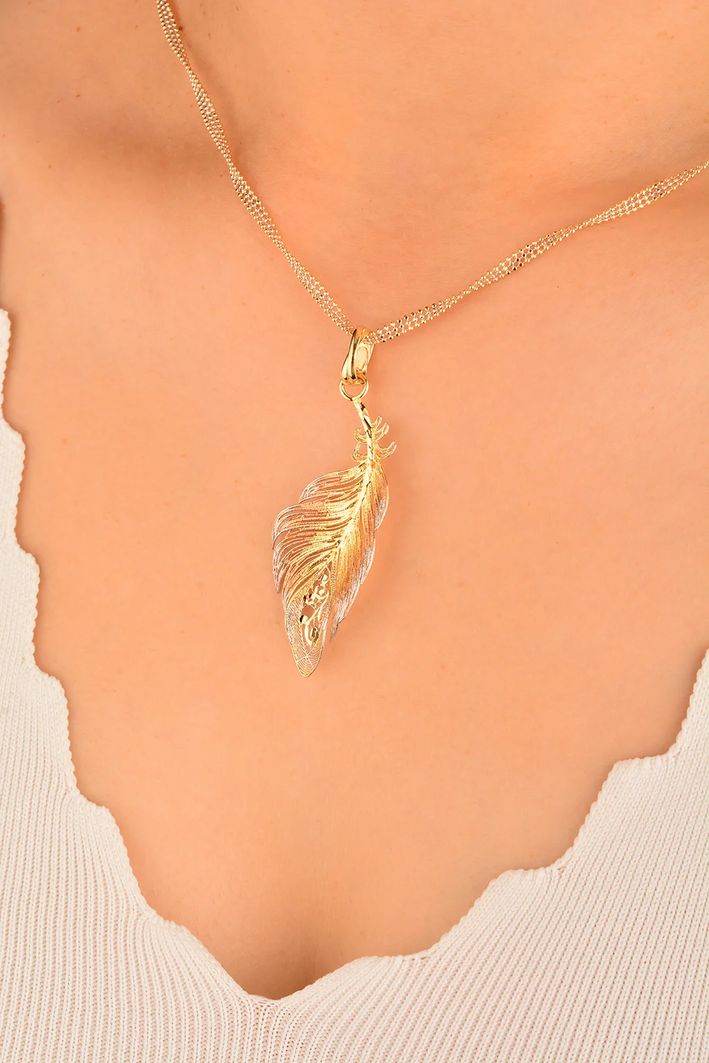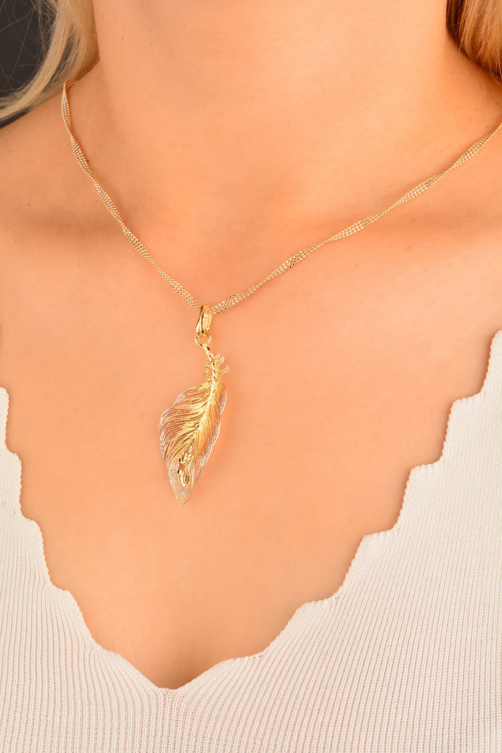 Cebeci 14 Ayar Renkli Yaprak Altın Kolye
