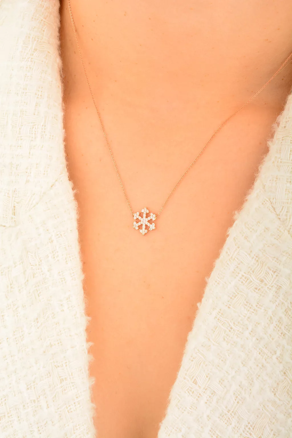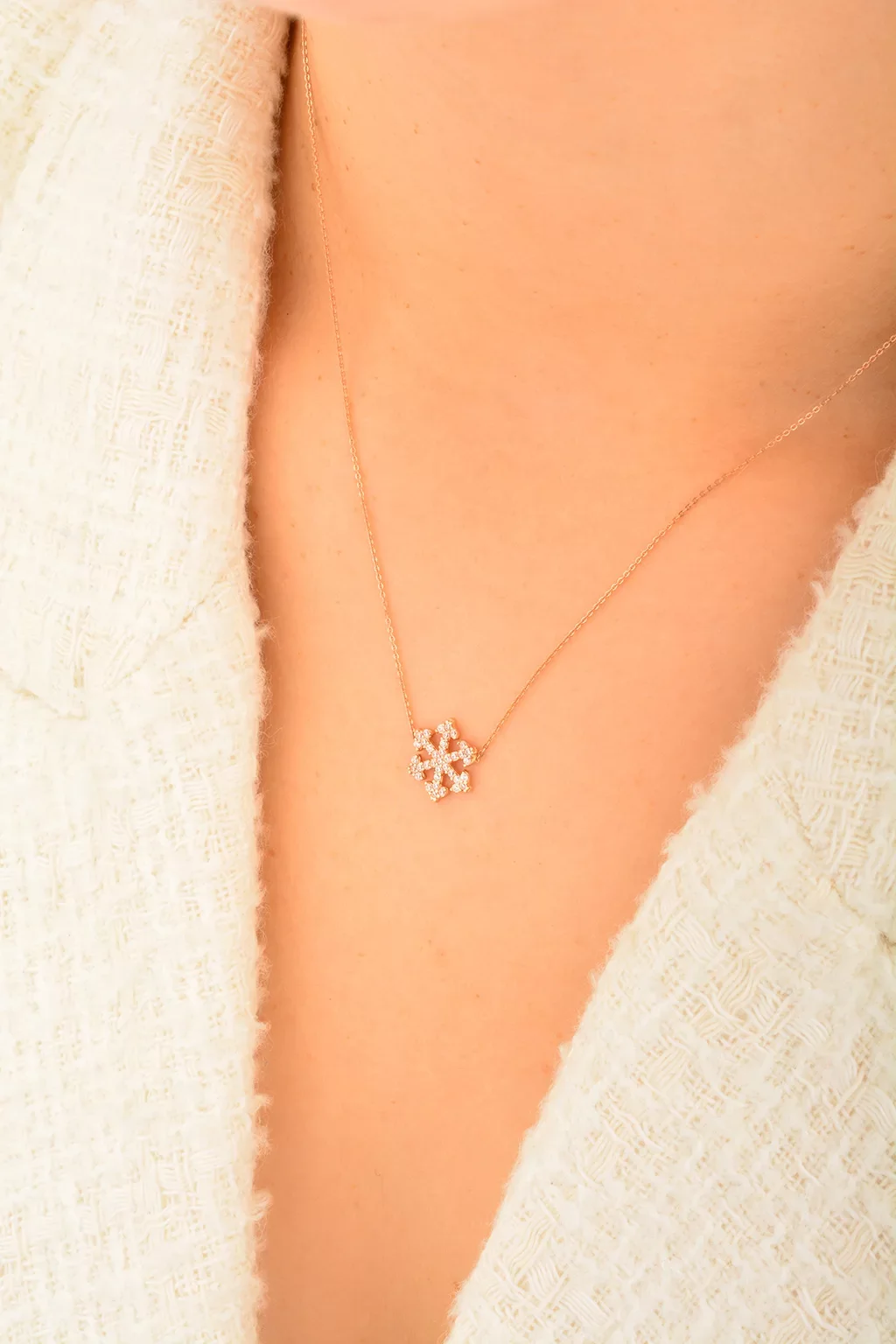 Cebeci 14 Ayar Rose Kar Tanesi Altın Kolye