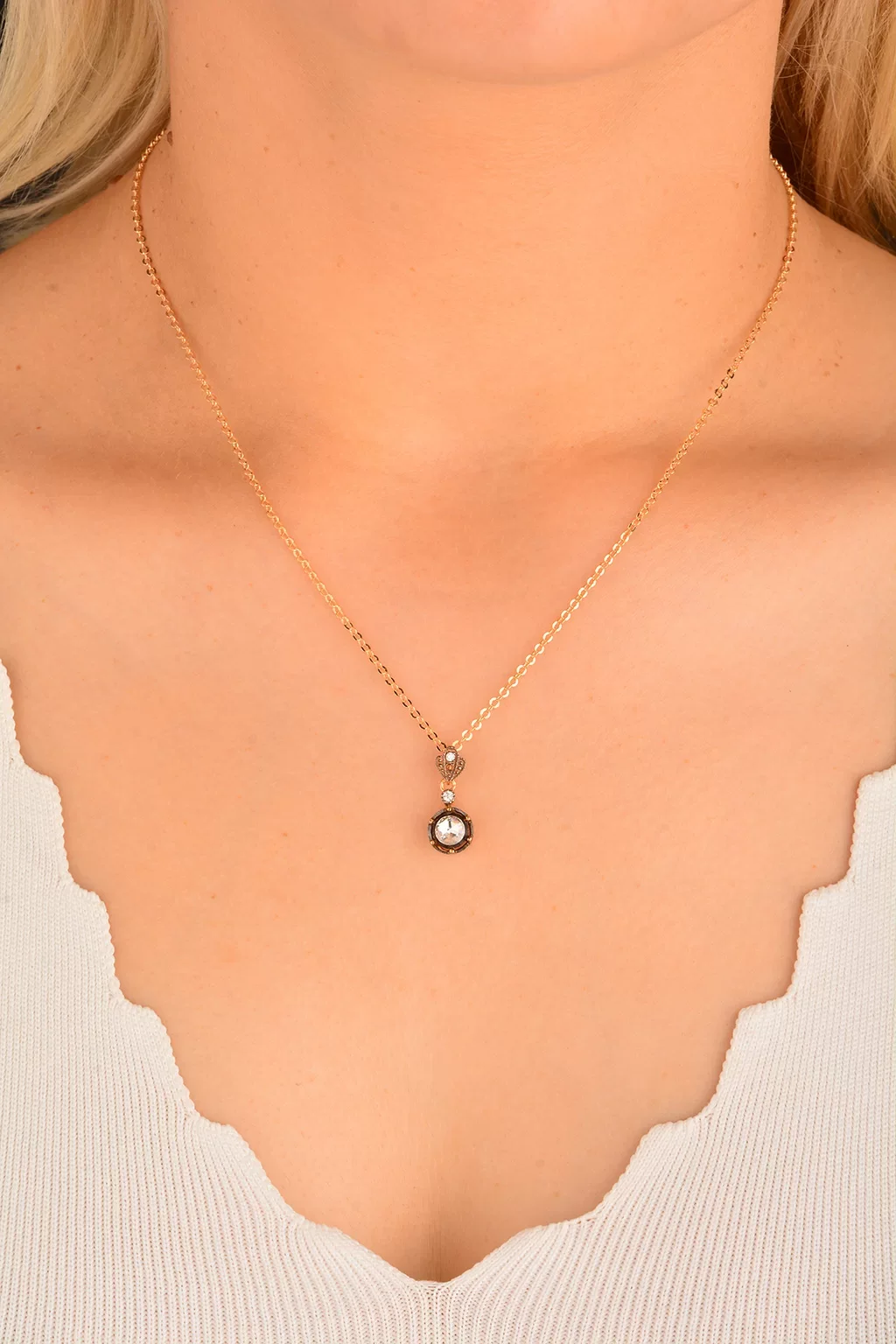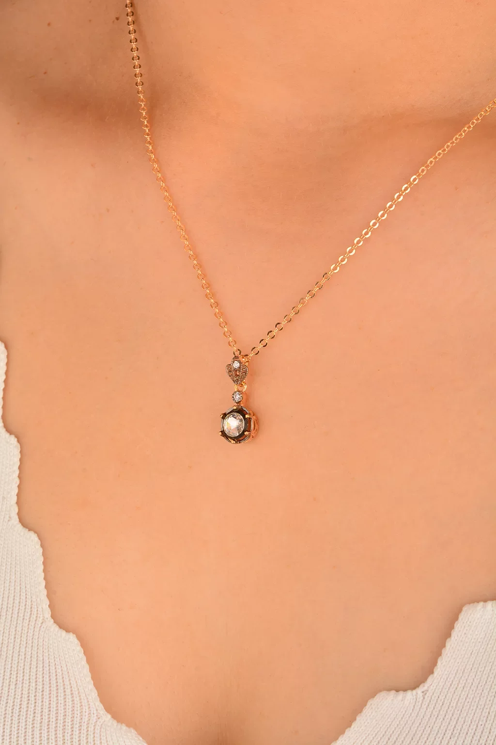 Cebeci 14 Ayar Rose Tek Taş Altın Kolye