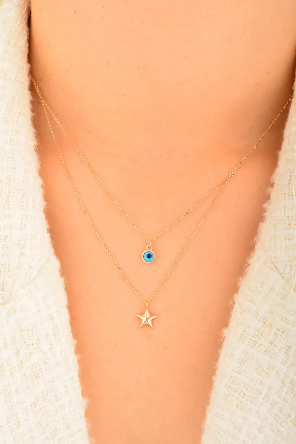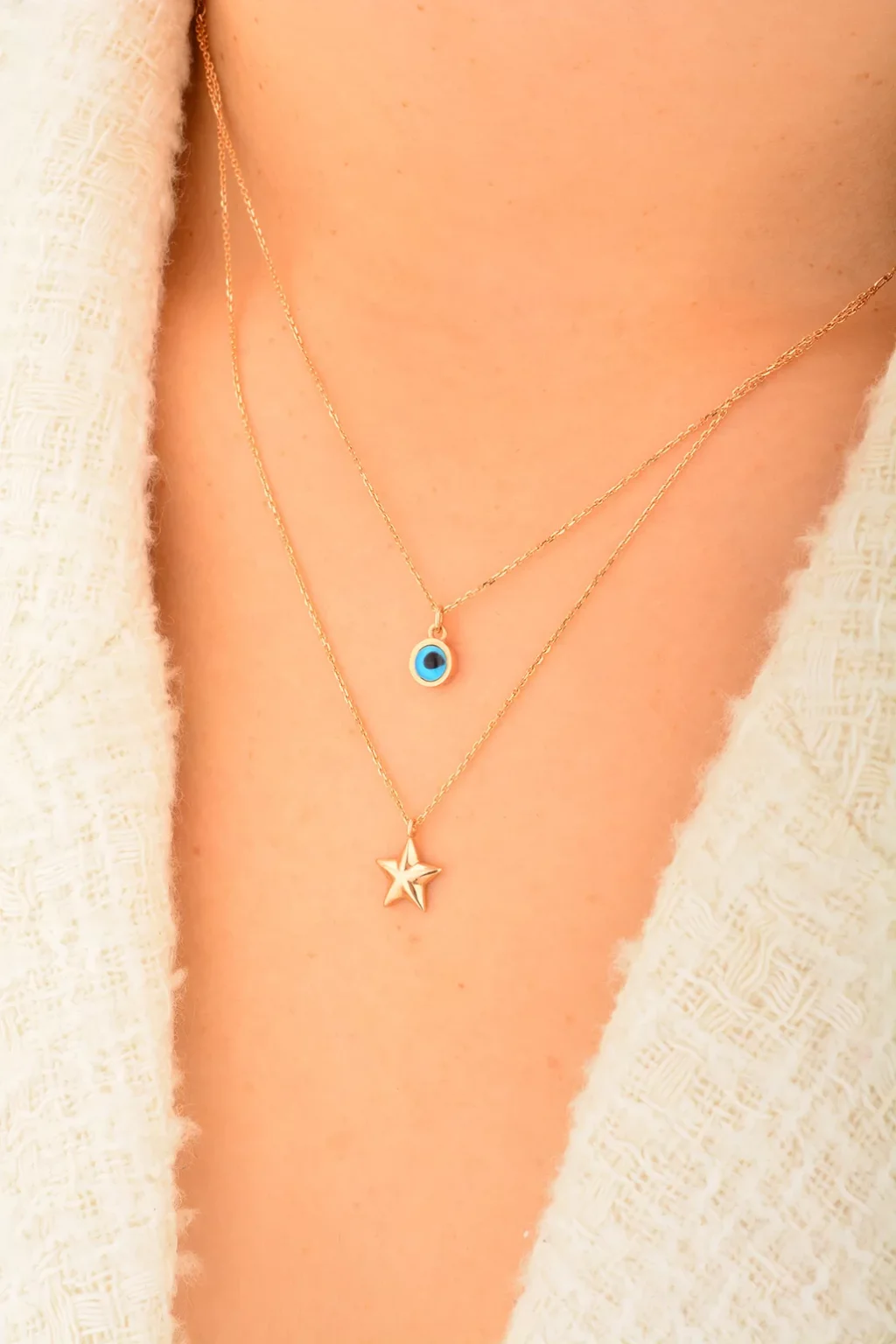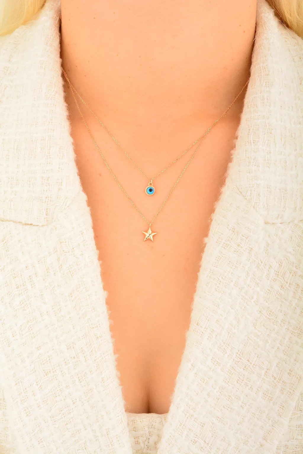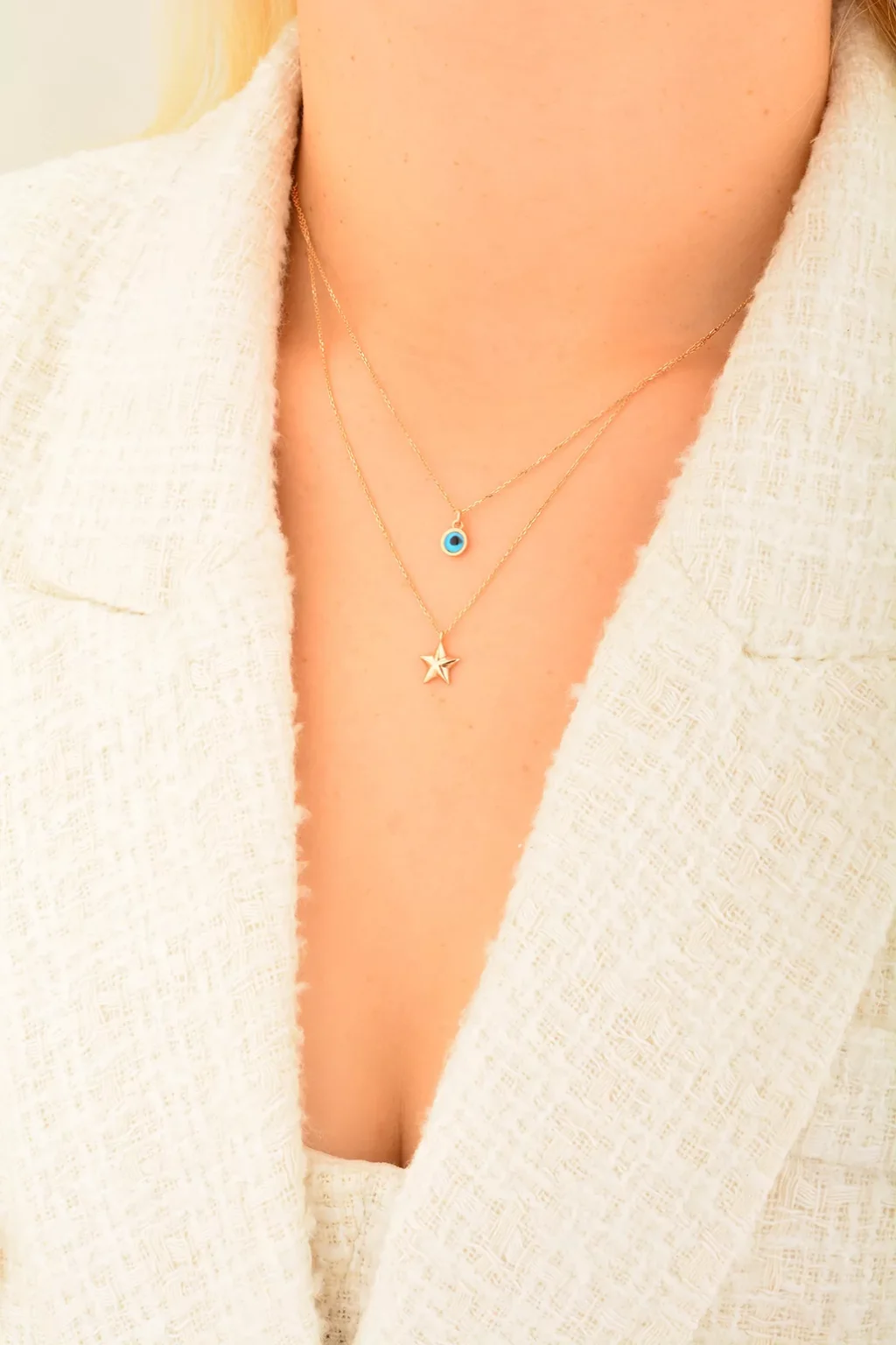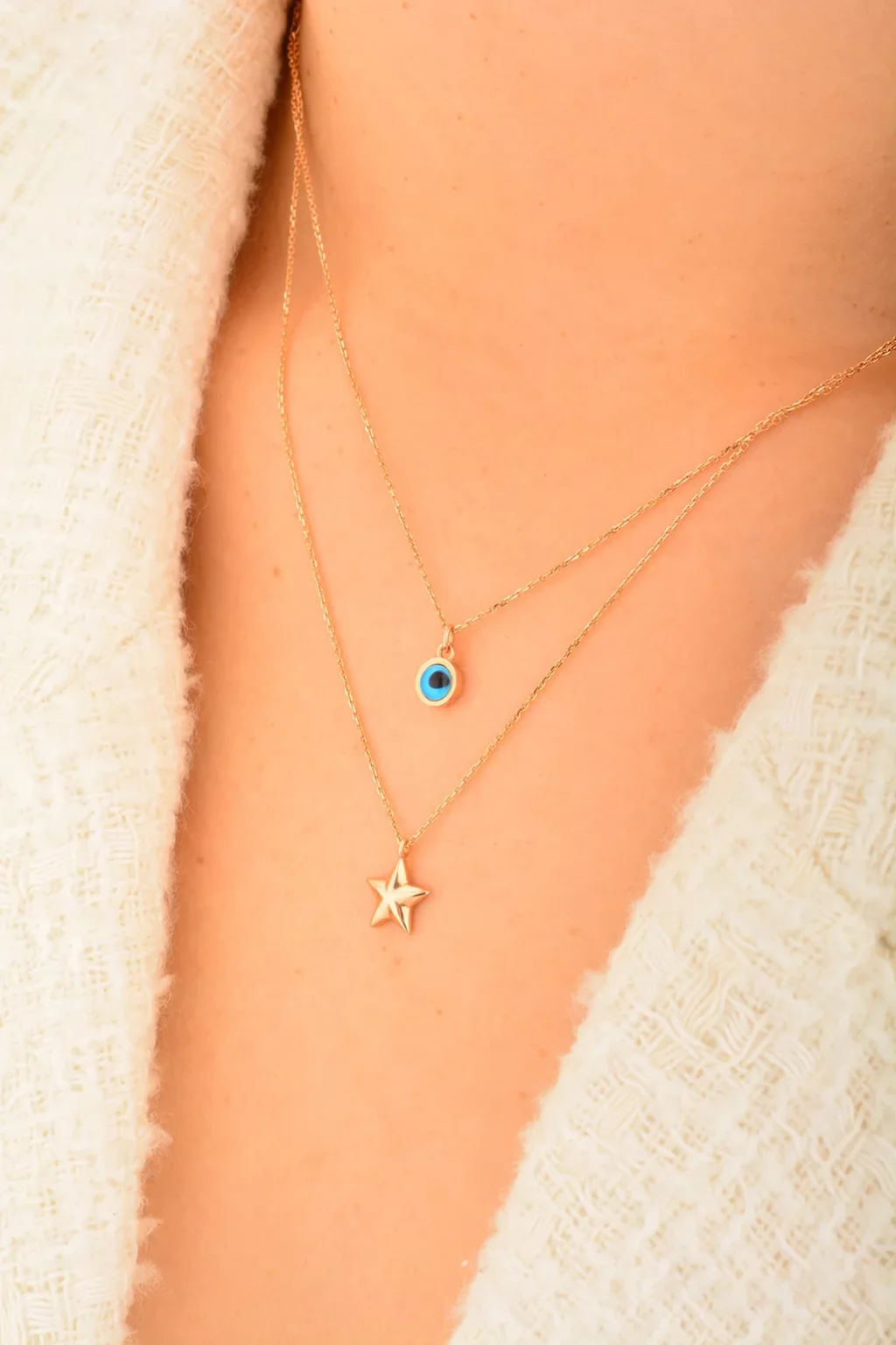 Cebeci 14 Ayar Rose Yıldız Göz Boncuklu Altın Kolye