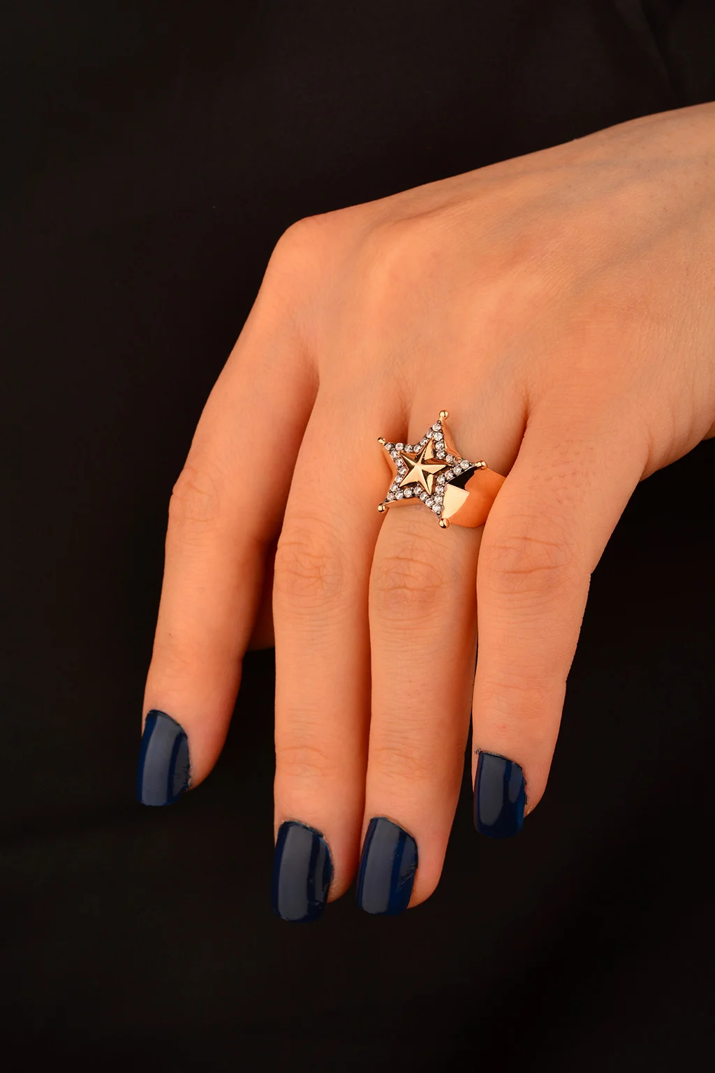 Cebeci 14 Ayar Rose Yıldızlı Altın Yüzük