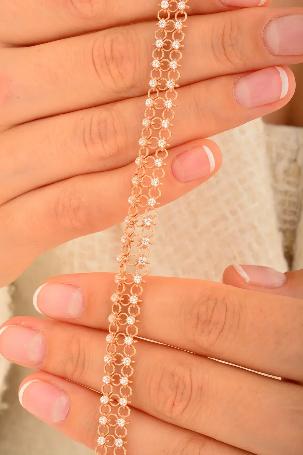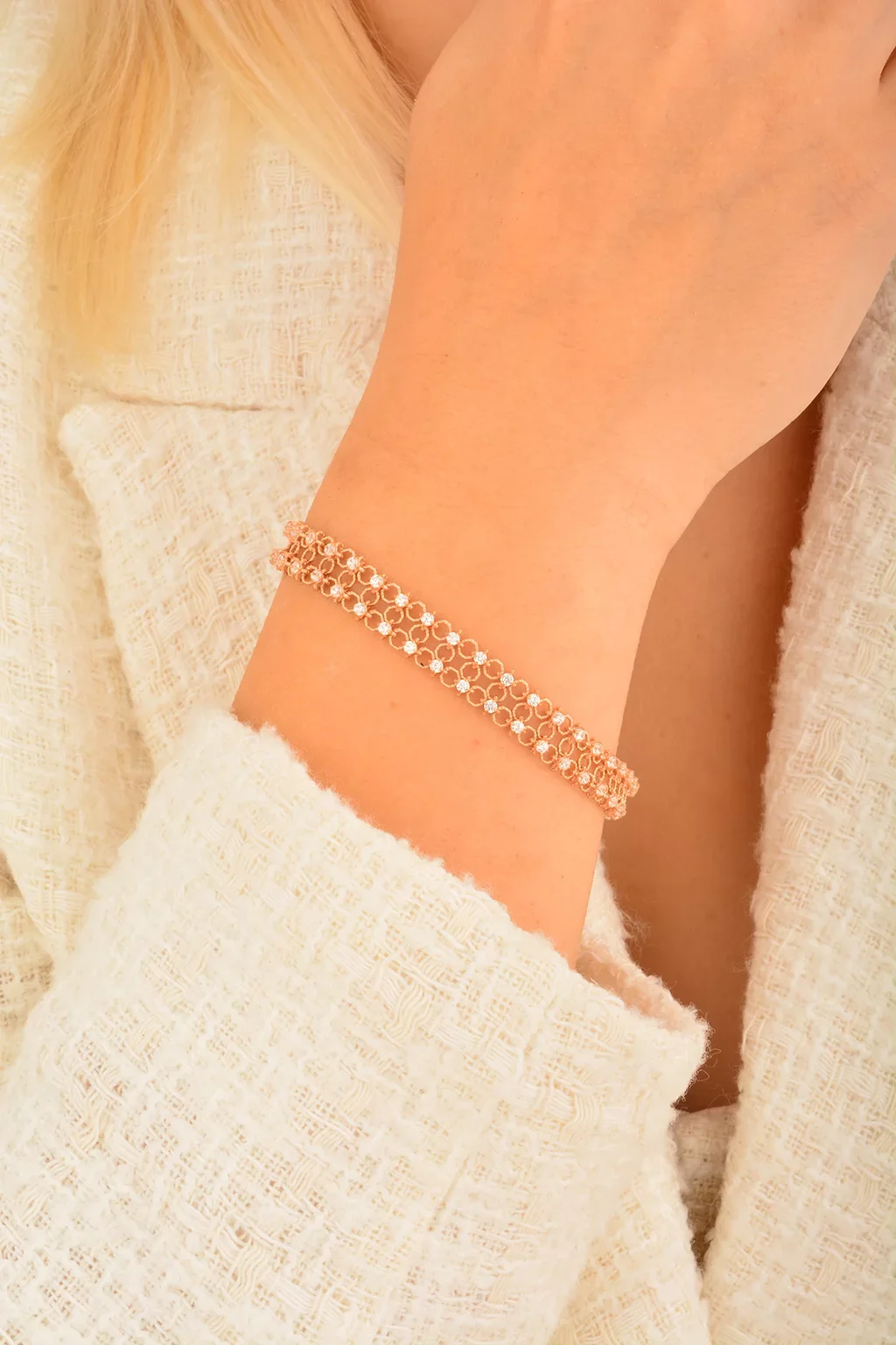 Cebeci 14 Ayar Sıra Taşlı Rose Altın Bileklik
