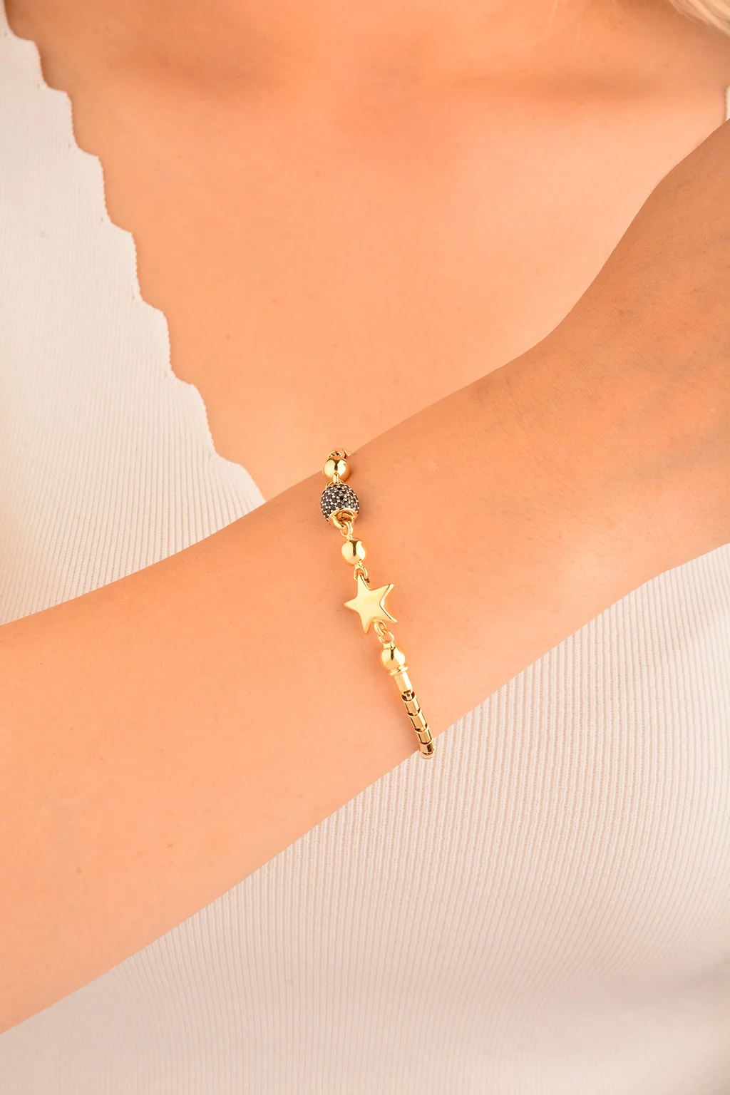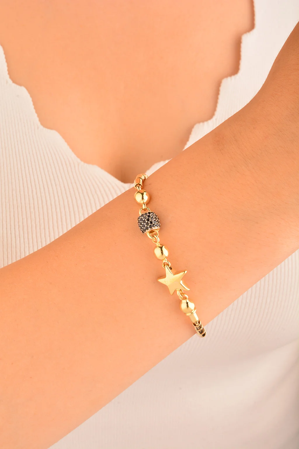 Cebeci 14 Ayar Siyah Pupa Altın Bileklik