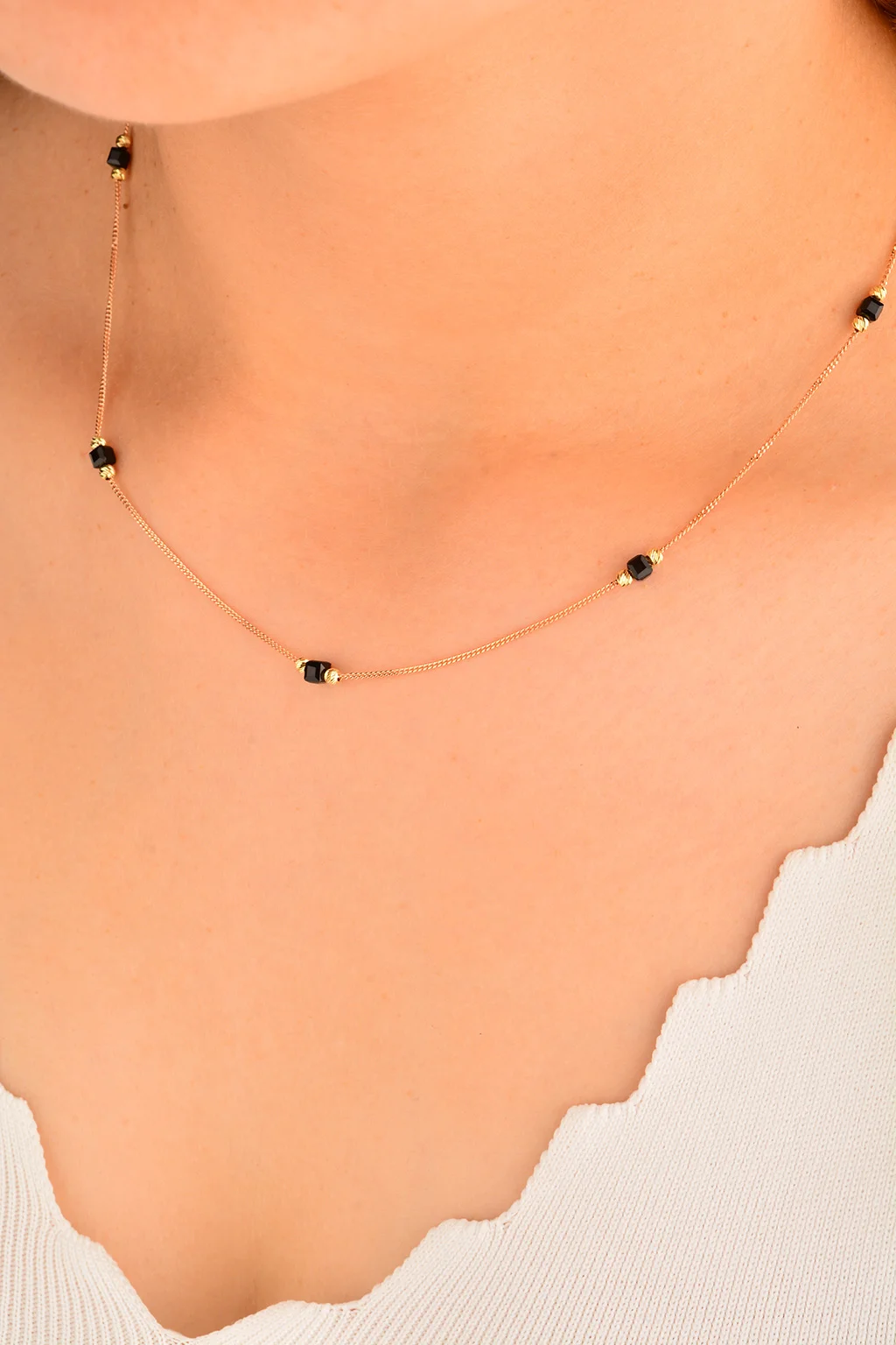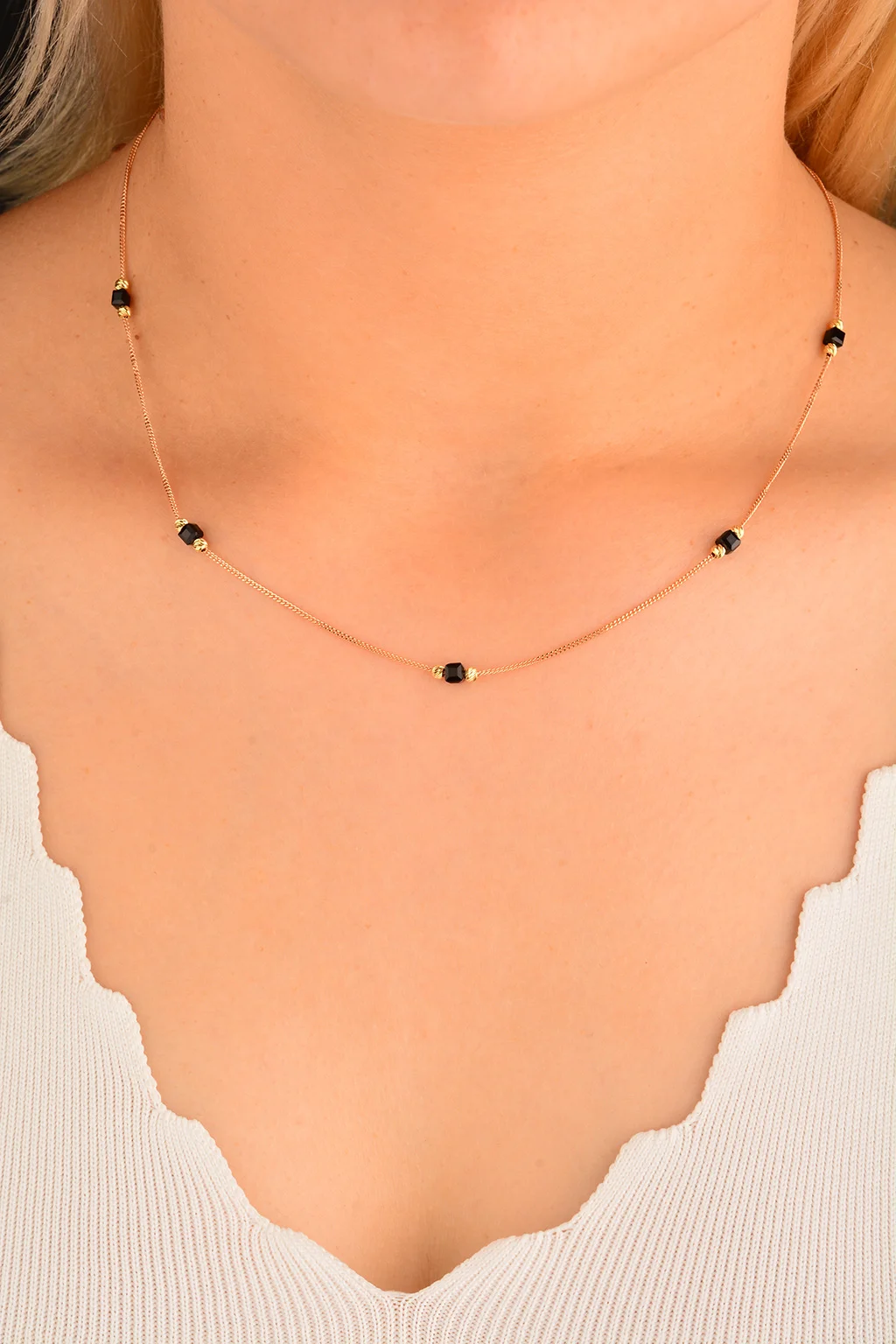 Cebeci 14 Ayar Siyah Küplü Altın Kolye