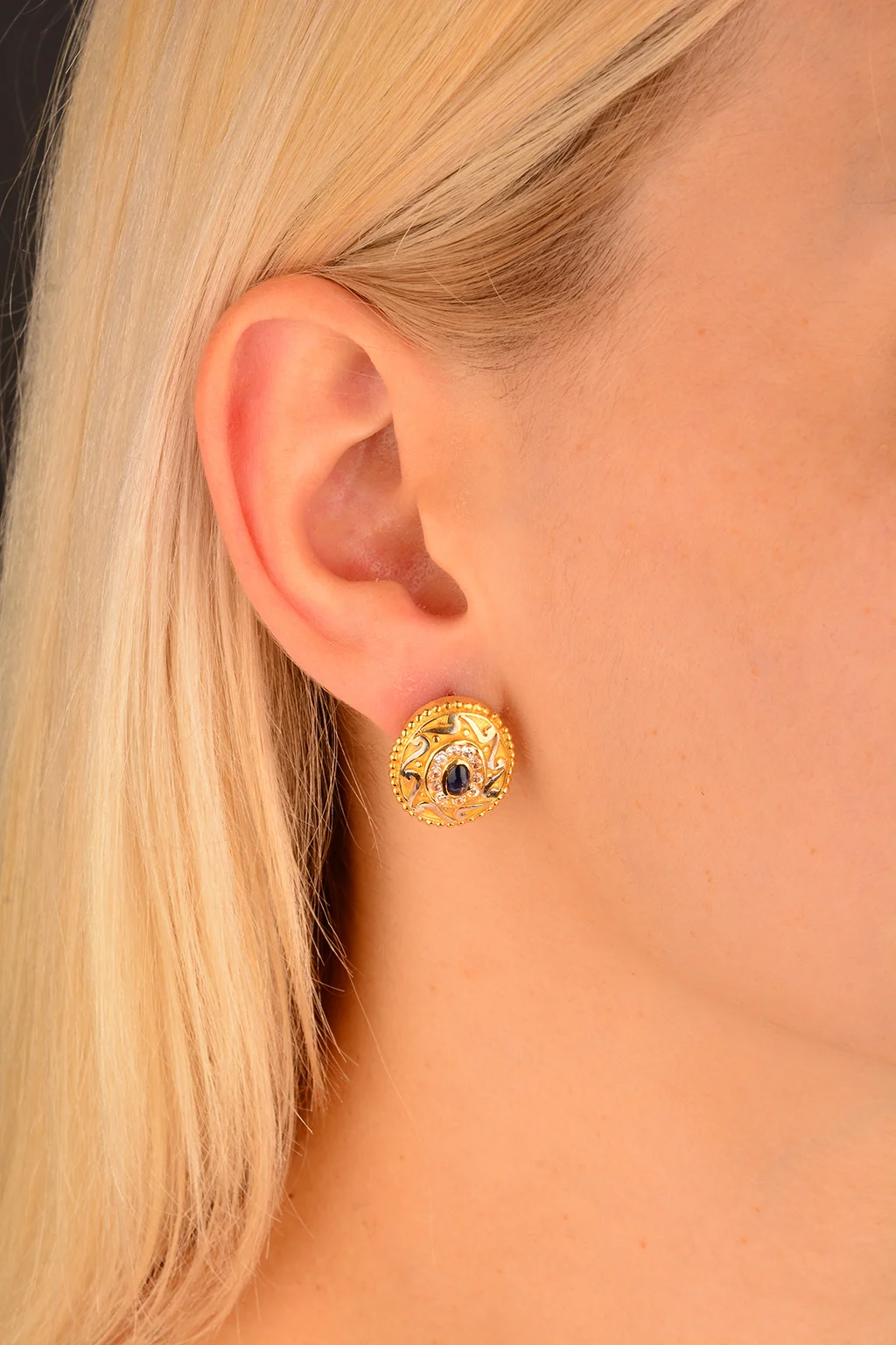 Cebeci 14 Ayar Siyah Taşlı Altın Küpe