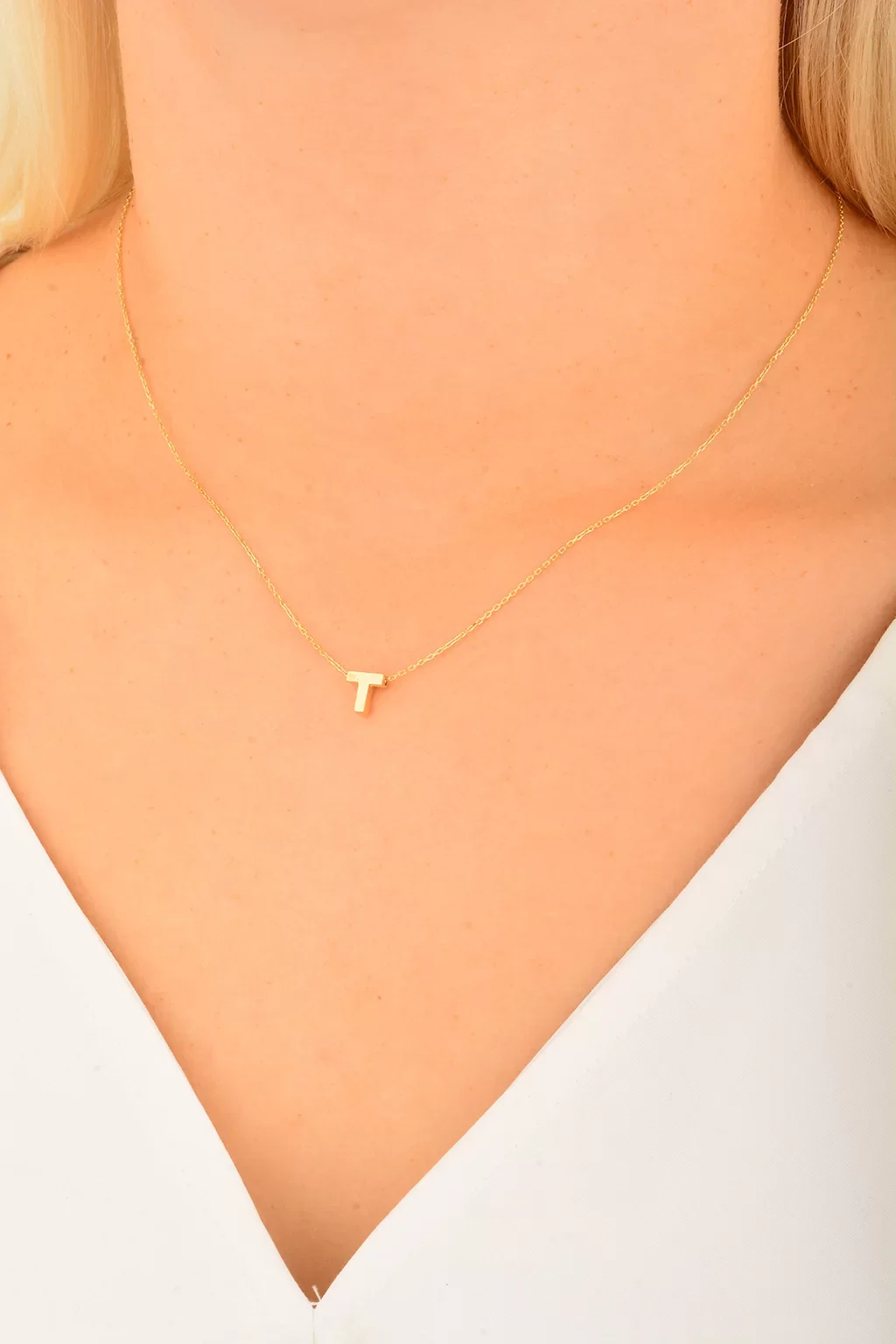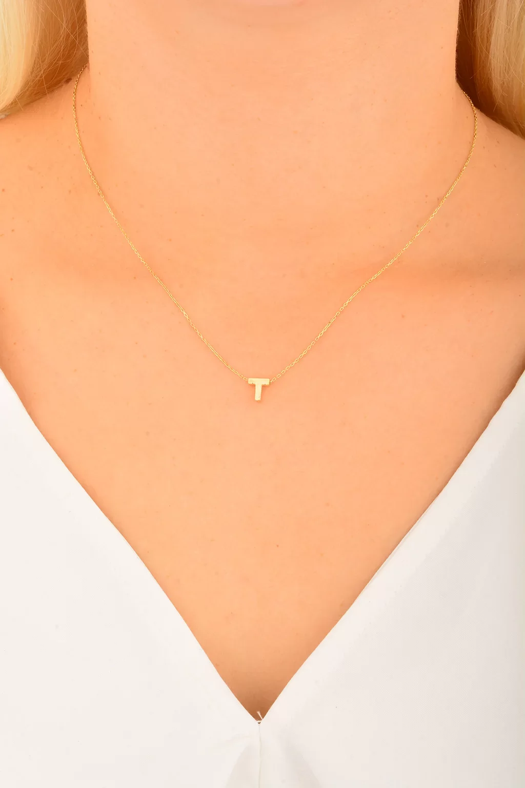 Cebeci 14 Ayar T Harfli Altın Kolye