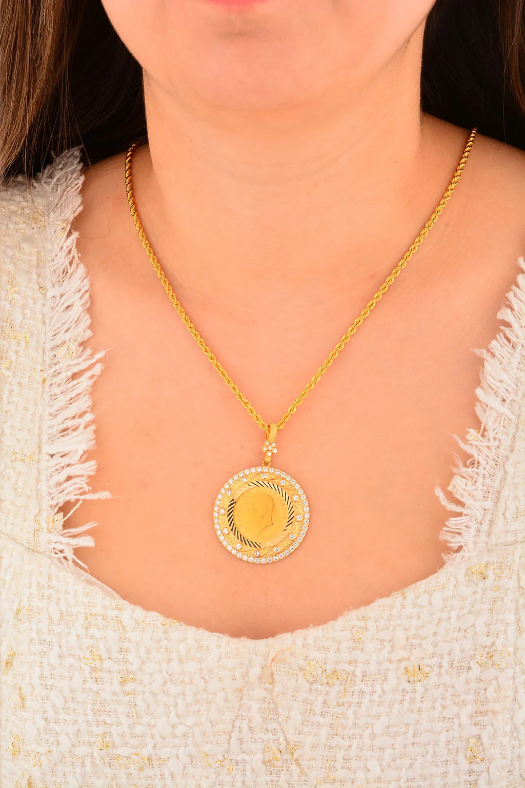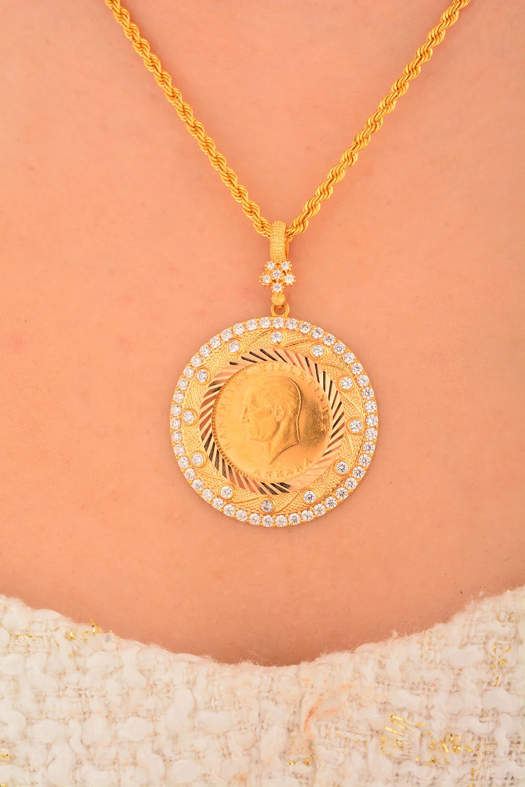 Yaşama anlam katan en özel anları en güzel kadın takılar ile taçlandırıyoruz. Özenle tasarladığımız 14 ayar kadın kolye ucu modellerimiz  hem geçmiş hem de modern zamanların izlerini yansıtıyoruz. Kusursuz işçilikleri özel tasarımlar ile harmanlayarak en yalın günlere ve en görkemli gecelere daha fazla anlam yüklüyoruz.Cebeci Kuyumculuk farkıyla üretilmiş olan özel tasarım kadın kolye ucu ürünlerimiz ile daha zarif ve şık olmanın lüksünü sizler de yaşayın. Kalite tutkunu ve altın kolye ucu takmayı seven kadınlar için en ideal seçenekler bu alımlı dünyada sizleri bekliyor.