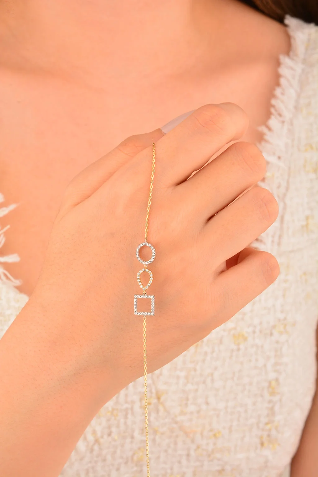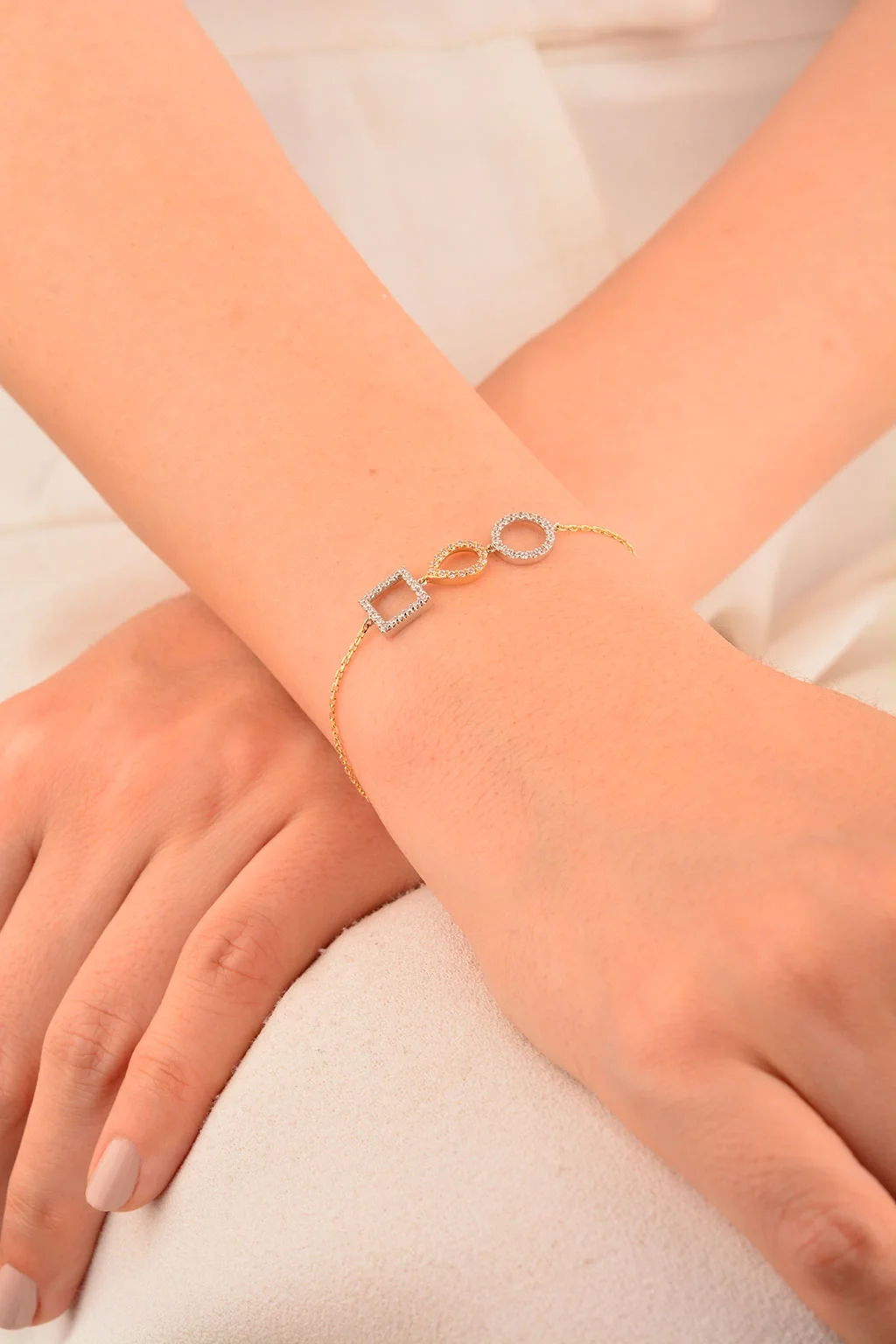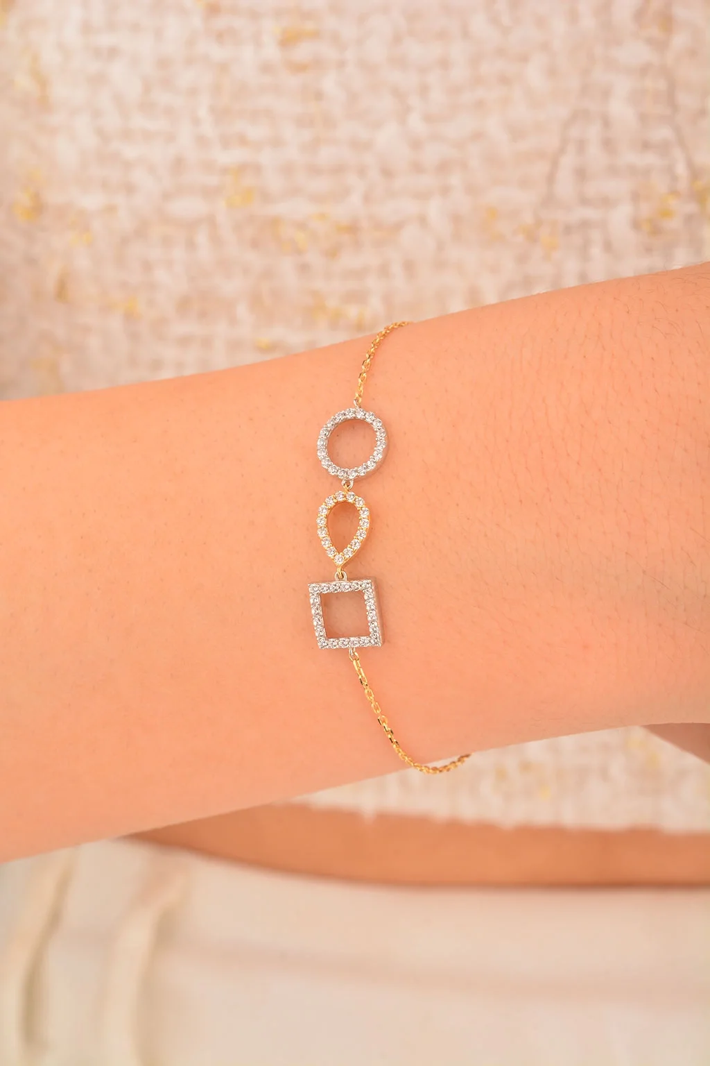 Cebeci 14 Ayar Taşlı Altın Şekilli Bileklik