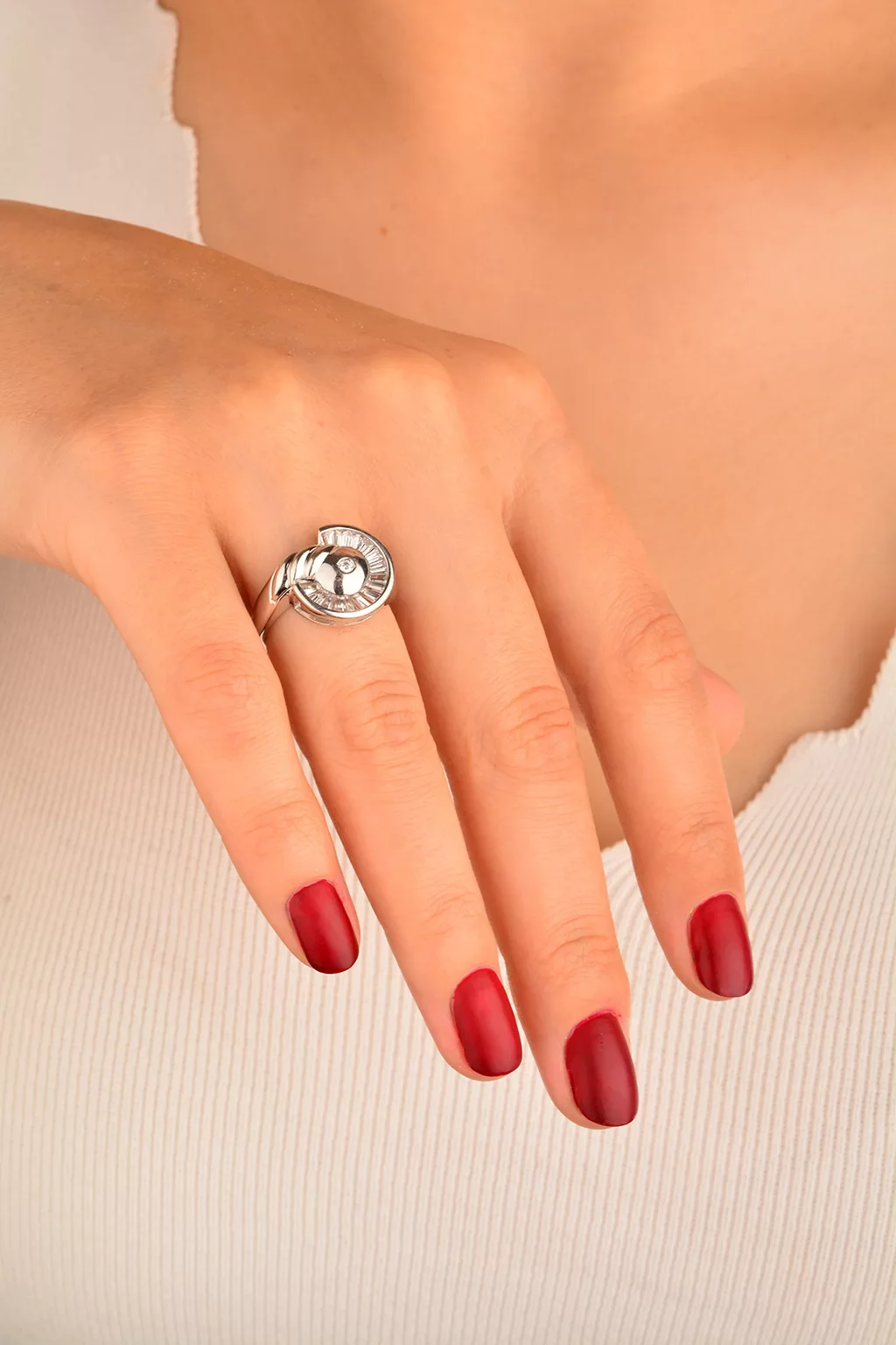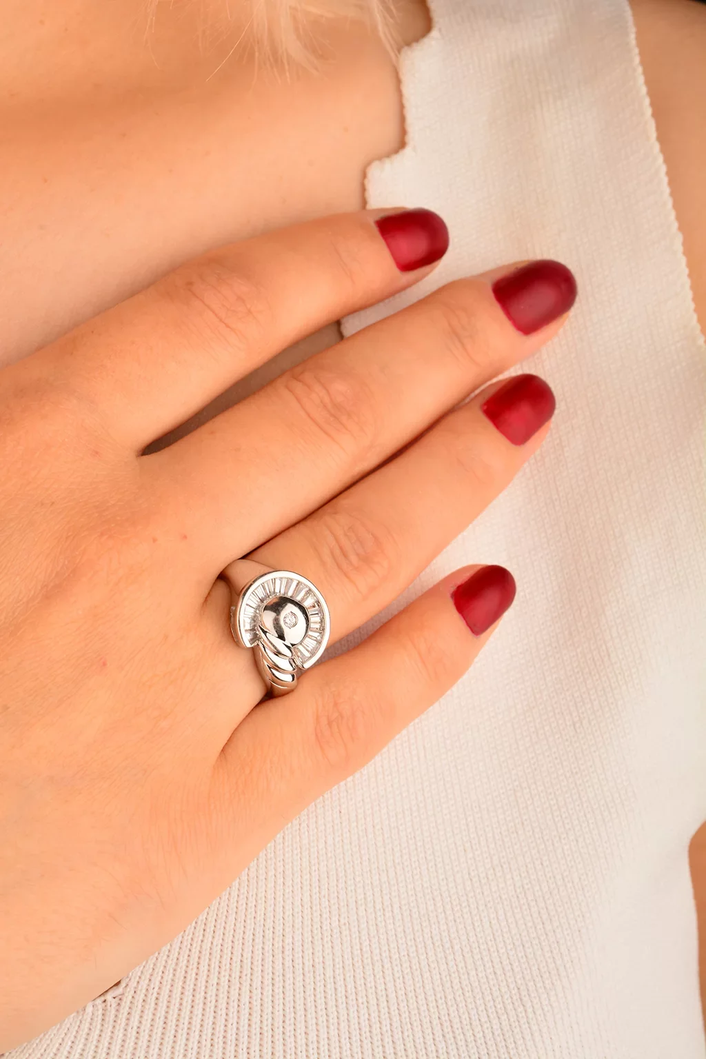 Cebeci 14 Ayar Taşlı Beyaz Altın Yüzük